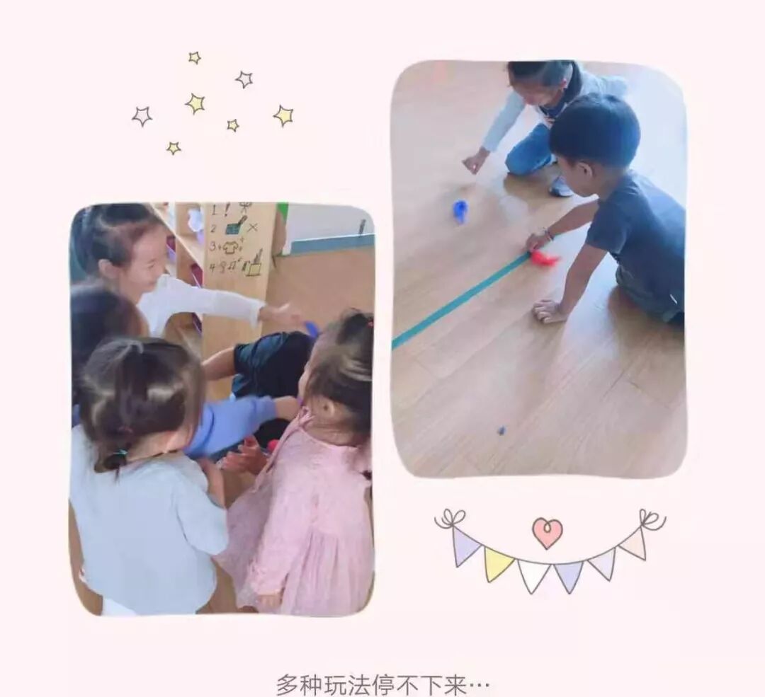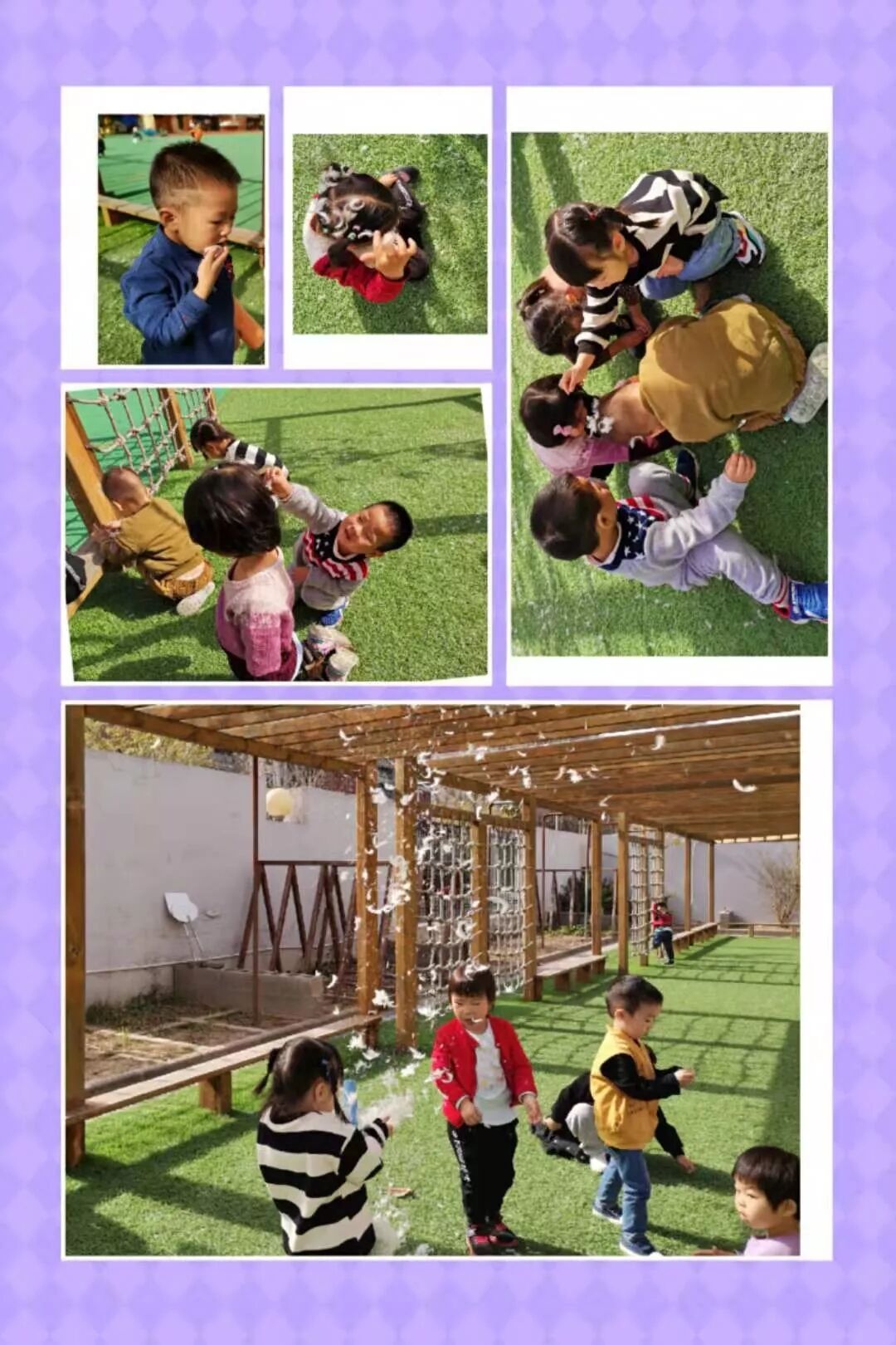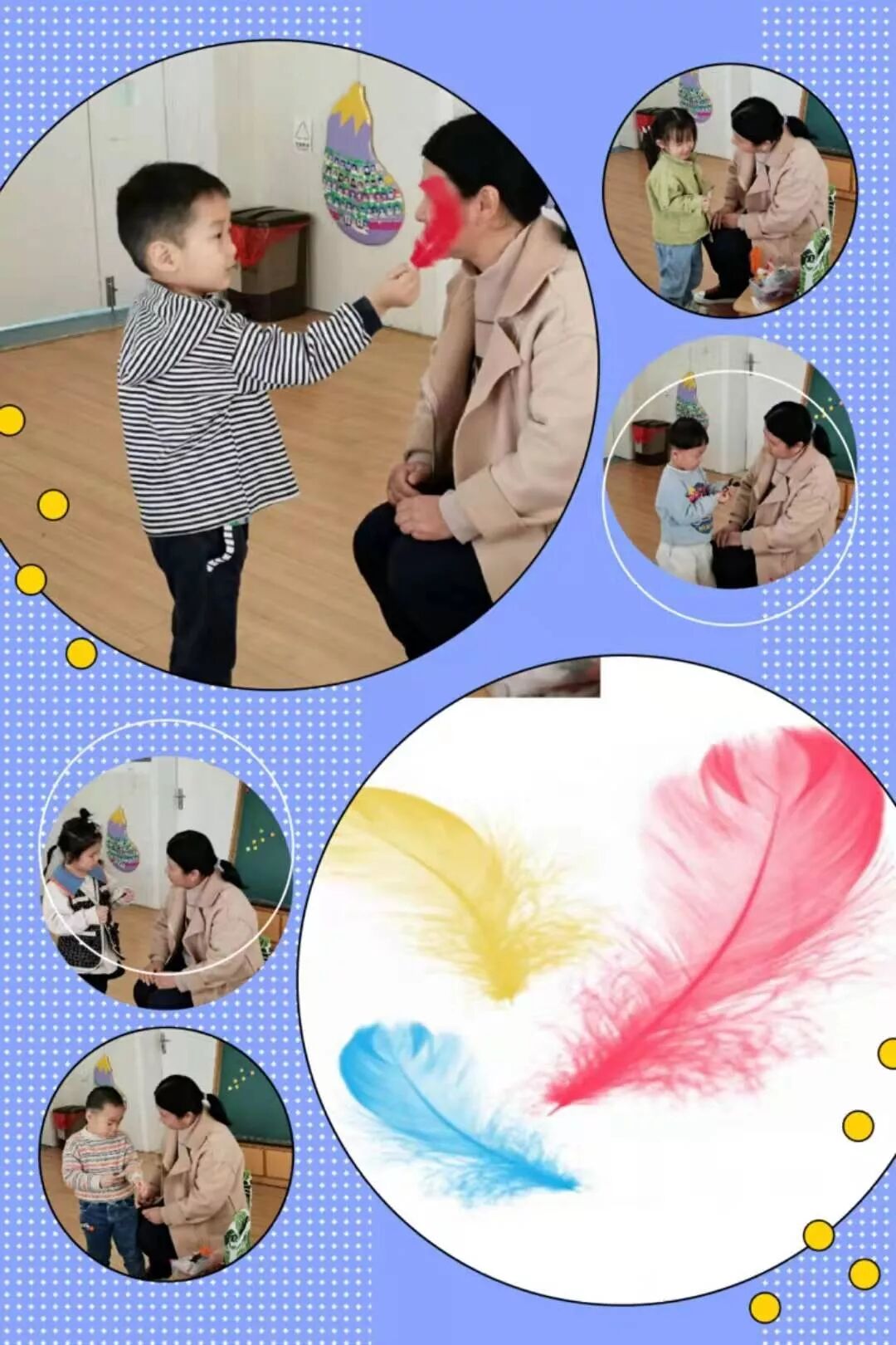 老师的想法:男孩的好奇心和探究的积极性如此强烈,我将先静静地观察,然后再搭建相应的支架进行支持。 《幼儿园教育指导纲要(试行)》中提出“要充分利用自然环境,扩展幼儿生活和学习的空间。”陈鹤琴先生也指出:“大自然、大社会都是活教材。”他提倡把自然材料作为一种“隐性课程”来开发,以促进幼儿智力、个性等方面的发展。 由此,如皋市如城光华幼儿园小八班和小九班以“羽毛”为生长点,在园本课程的框架下充分利用自然资源,因地制宜进行就地取材,开展具有小班特色的班本课程“飞舞吧,羽毛”。初识羽毛 1.玩一玩 在吹吹玩玩、摆摆弄弄中,幼儿通过多种方式去认识羽毛。他们产生了疑问: *为什么有的羽毛上有斑点? *为什么有的羽毛是红的,有的羽毛是紫的,有的羽毛是黄的? *为什么有的羽毛只有一种颜色? *为什么有的羽毛是软软的?有的羽毛是硬硬的?...... 2.说一说