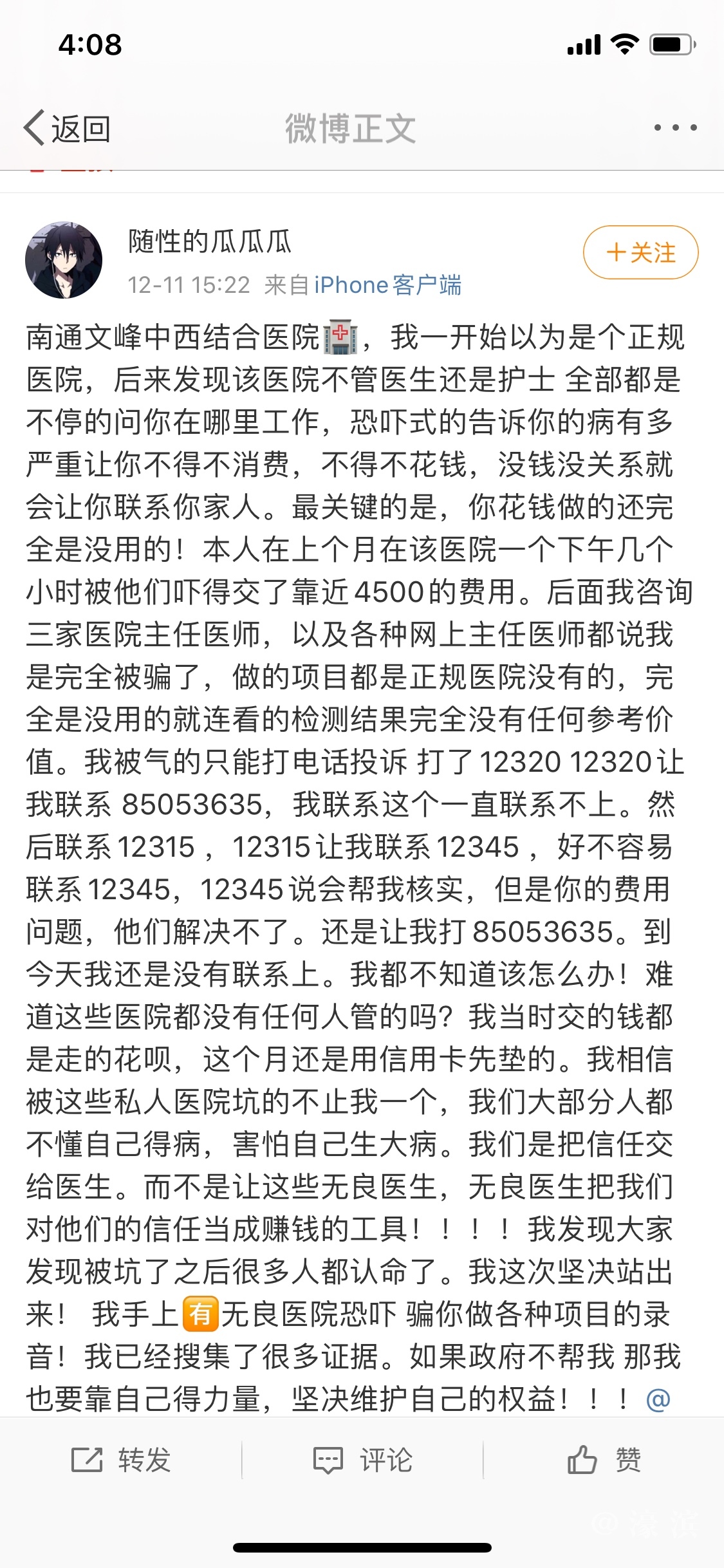 [焦点爆料] 网友曝光:南通文峰中西结合医院 |
