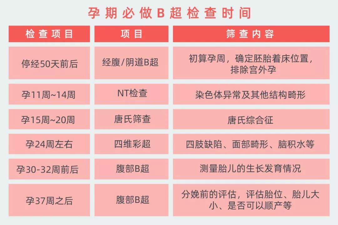 如果问孕妈最大的愿望是什么?毫无疑问是生个健康的宝宝! 就这么一个小小的愿望,却也有一些人难以实现。 前几天,我在浏览微博的时候就看到这样一则新闻: 江苏淮安一位孕妇做产检时,发现肚子里的胎儿只有一个眼眶,没有鼻子,也没有下颌,严重畸形,最后只能无奈引产。 对于孕妈来说,这无疑是最大的打击! 有数据统计:我国是出生缺陷高发的国家之一,每年出生缺陷儿数量高达80万~120万,大约每30秒就有一名缺陷儿出生。 看到这些数字,不由得让人瑟瑟发抖,到底是什么导致肚子里的宝宝畸形了?今天我们就一探究竟! - 1 - 这些致畸原因 你必须知道! 所谓出生缺陷儿,也叫做先天性畸形儿,就是宝宝在妈妈肚子里的时候身体结构、功能、代谢已经出现异常了。 即使你有超级大法,也基本无力回天了。 所以,对孕妈来说,我们能做的就是尽可能的提前避免这些致畸因素。 导致胎儿畸形的主要原因就是遗传和环境两大因素。 ● 遗传因素 父母中任何一方有遗传因素都可能影响到胎儿,它约占所有因素的25%,最常见的就是染色体异常。 可能就是由于在细胞分裂的时候,染色体发生不分离或断裂和重新链接所致。 这种情况下,胎儿大都会保不住自行流产,就算侥幸存活也往往存在严重的畸形,比如21三体综合征。 讲真,这种先天性的因素我们是很难预防的,只能在后期做好产检及早发现。 ● 环境因素 就是妈妈在怀孕过程中的“不良经历”,主要就是这些: 不良生活习惯:如抽烟、酗酒、吸毒等 物理因素:电离辐射、高热、放射线等 化学因素:药物、农药、化肥等 生物因素:感染弓形虫、梅毒、风疹病毒等 所以,在孕期妈妈该注意的还是好好要注意,养成良好的生活习惯,远离危险地带,不要吃生肉哦。 上面提到的这些知识点也都要一一记下来。 - 2 - 避免生出畸形宝宝 孕期这几项检查必须做 不得不说,现在医院的人是真的多,经常处于排队三小时,看病两分钟的状态,把我们挺着大肚子的孕妈们也整的够呛。 所以,有的孕妈就干脆偷懒不按时产检。 你瞅瞅,这位常州的孕妈就是酱紫,整个孕期产检只做了2次,并且拒绝了排畸检查,结果生下来的宝宝竟然都无法辨别性别。 必须承认的是: 得益于产前检查,我国新生儿因出生缺陷导致的死亡率从2000年的4‰下降至2014年2.1‰,十四年减少了近一半! 所以,堂妈在这里要提醒各位妈妈们,虽然跑医院很累很烦,但是,不去真的不行啊! 尤其是这几项排畸检查,一定要按时做! ① NT检查(孕11周~14周) 属于孕早期的唐氏筛查,主要就是尽早让妈妈得知胎儿是否有异常。 它是通过B超检查胎儿的颈后透明层厚度,来判断胎儿异常概率的高低。 一般来说,NT越厚,胎儿异常的概率也就越大: 当NT增厚但小于3.5mm时,大约90%的胎儿都是正常的,但当NT大于6.5mm时,胎儿正常的几率只有15%。 有研究表示,根据NT一项指标,就可以筛查出60%~70%的胎儿染色体异常和大约10%的胎儿解剖结构异常。 所以,在孕早期加入NT数值参考的唐筛,对于孕中后期妈妈的一些判断上能提供很大的帮助。 如果妈妈不小心错过了做NT的最佳时间,那就千万不要错过中期的唐氏筛查啦。 ② 唐氏筛查(孕15周~20周) 这个妈妈们肯定都不陌生啦,它是通过检测孕妈的血液并结合年龄、体重、孕周等方面来判断胎儿患21三体综合征、神经管缺陷的危险系数 。 如果检查结果中提示高风险,说明胎儿患有唐氏综合征的风险增高,但也不能完全确定就一定是唐氏儿哦。 所以,很多妈妈就觉得这项检查有点鸡肋。 其实,从医学的角度来说,唐筛虽然不能确定胎儿就是唐氏儿,但它可以将高风险的胎儿筛选出来,还是具有一定的临床意义。 如果唐筛提示高风险,妈妈需要进一步进行无创DNA检测,它是通过采取孕妈的静脉血来进行的,低风险,最佳检测时间为孕12周~22周。 唯一的缺点就是费用较高,一般需要2000多人民币。 在临床学统计中显示:无创DNA检测,检出率高达99%,漏检率低至1%。 如果这两项都结果都是高风险,或者说唐筛高风险又错过了无创的最佳时间,才需要考虑做羊水穿刺哦。 Ps:早中期的唐筛都不需要空腹和憋尿,按照约定时间直接检查就可以啦; 由于要确认胎儿孕周,所以很多医院会在唐氏筛查的当天也要求做B超哦。 ③ 四维彩超大排畸(孕24周前后) 孕中期的时候,胎儿的结构基本已经形成,而且活动空间比较大,这时候做四维能比较清楚的看到宝宝的全貌。 这也是最直观的胎儿排畸检查,像四肢缺陷、腭裂、脑积水等问题都可以检查出来。 这里要提醒的是,由于这项检查还是比较复杂的,建议妈妈去正规的三甲医院检查。 之前就出现过孕妈做完四维正常,但宝宝出生后却没有右臂的情况。 做四维彩超前这些小Tips了解一下: ● 需要提前预约,尤其是三甲大医院; ● 不需要憋尿和空腹,按照约好时间前往即可; ● 如果宝宝体位不佳,医生会提醒孕妈活动后再检查; ● 时间较长,需要半小时左右,如果胎儿畸形,可能会更久。 太多了记不住?没关系,下面这张表格帮妈妈整理了孕期必做的所有B超,可以保存下来哦。 点击查看大图 ♥ 虽然所有的筛查方法都不能完全做到100%,但是毫无疑问它一定是避免造成宝宝和家庭悲剧最好的手段。 所以妈妈们,除了在孕期尽可能的保护好自己,远离危险因素以外,也一定要记得按时产检,这样才能确保我们的宝宝健康成长哦。