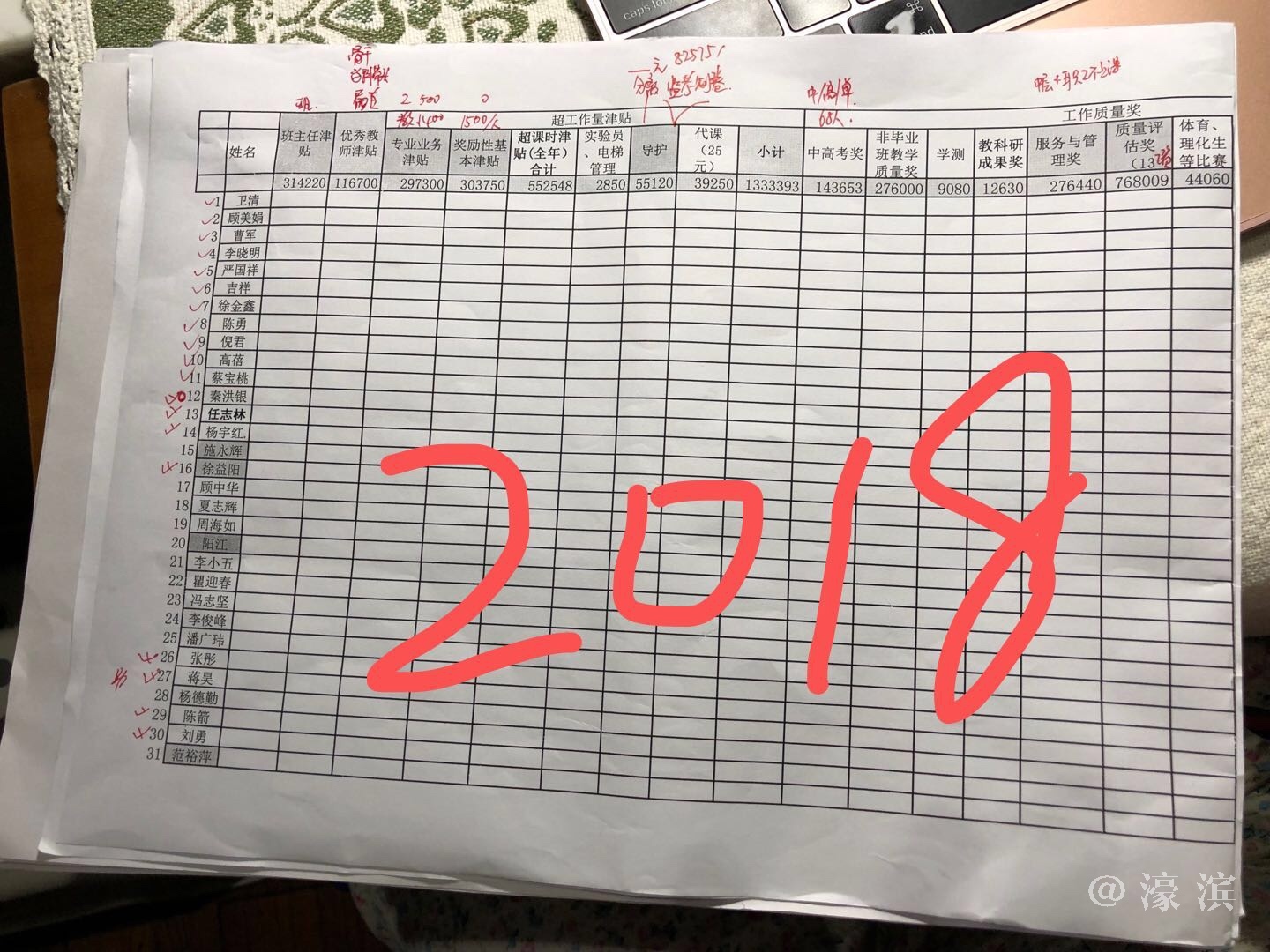 这个小海中学还不错,教师们还能算到各自拿多少,有些学校教师们都不知道自己该拿多少绩效。唉,老师们还是不知道自己拿多少为好,哈哈!