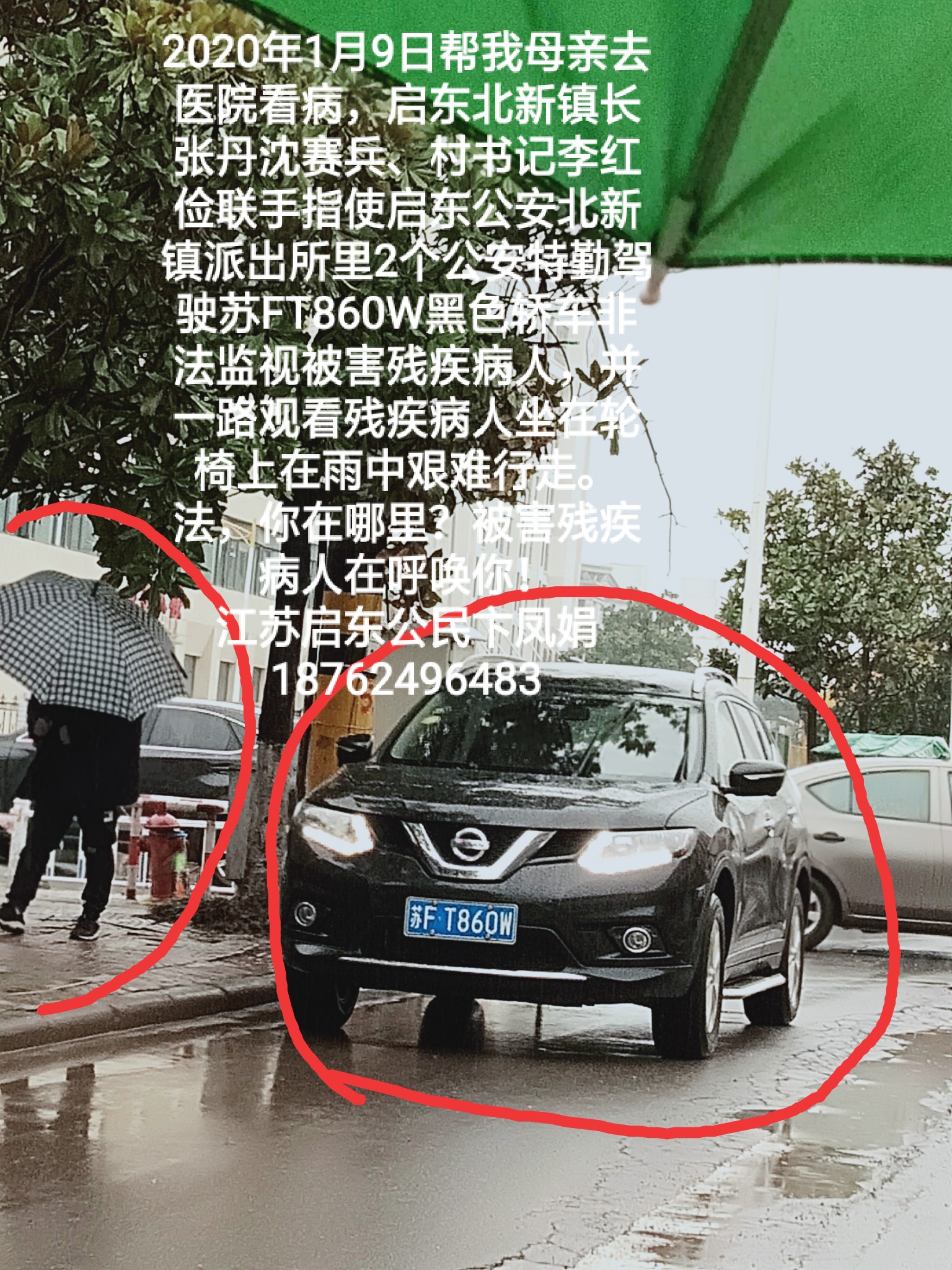 江苏启东恶官流氓非法监视故意用轿车撞击被害人 |