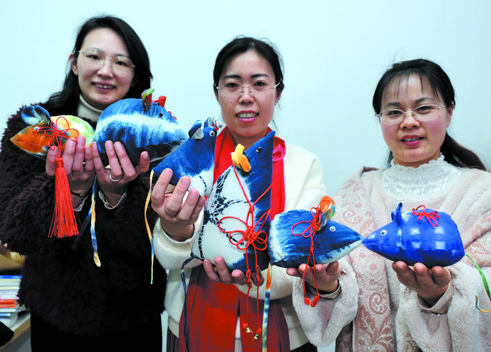 职大“国赛”冠军团队设计出一款名为“‘鼠’一‘鼠’二”的扎染吉祥物。 鼠年新春即将到来,昨天,南通职大“国赛”冠军团队设计出一款名为“‘鼠’一‘鼠’二”的扎染吉祥物,庆贺新春。 去年11月底,南通职业大学艺术学院李娟、张晶镜、陈霞、吴敬4位老师的《服装手工印染》课程,在全国职业院校技能大赛决赛教学能力比武中摘得桂冠,为南通扎染技艺传承增添了浓墨重彩的一笔。 “‘鼠’一‘鼠’二”系列作品由6只不同纹样和色彩的小老鼠组成,十分可爱。提起作品起名的灵感,作为主创之一的李娟表示,“鼠”“数”谐音,表示这是他们全手工制作的作品,用心程度数一数二、作品质量数一数二,也借此作品祝福全校所有师生新年都有好成绩、好运气,在自己的领域里数一数二。李娟介绍,整个作品采用纯棉面料,结合段扎法、叠扎法、捆扎法等不同扎染手法,使用纯天然的兰草做染料,制作出不同纹理。李娟说,6只小老鼠圆圆滚滚,用现代造型和传统工艺结合,同时寓意团团圆圆、圆圆满满。 扎染是中国传统技艺,据资料记载,其历史目前最早可追溯至东晋,盛行于唐宋,但流传至近代却面临失传的窘境。如今,江苏、四川、云南等地在扎染技艺传承上走在全国前列。上世纪七十年代初,南通在国内较早恢复扎染生产。经过40多年发展,南通扎染独树一帜,形成了返璞归真、多彩多姿、庄重典雅艺术风格。2011年,南通扎染技艺被列入江苏省级非物质文化遗产名录。 看到老师们制作出独一无二的扎染小老鼠,学生们都爱不释手。李娟说,现在扎染在年轻人心目中很有魅力。今年,南通职业大学艺术学院教师团队运用AR、大数据等技术,开发“扎染学习空间站、扎染电子小档案、仿真模拟软件”等信息化课件,让学生直观感受扎染纹样特征,掌握设计和操作要领,使得教学表现形式更加形象、立体,互动性更强。 记者黄哲