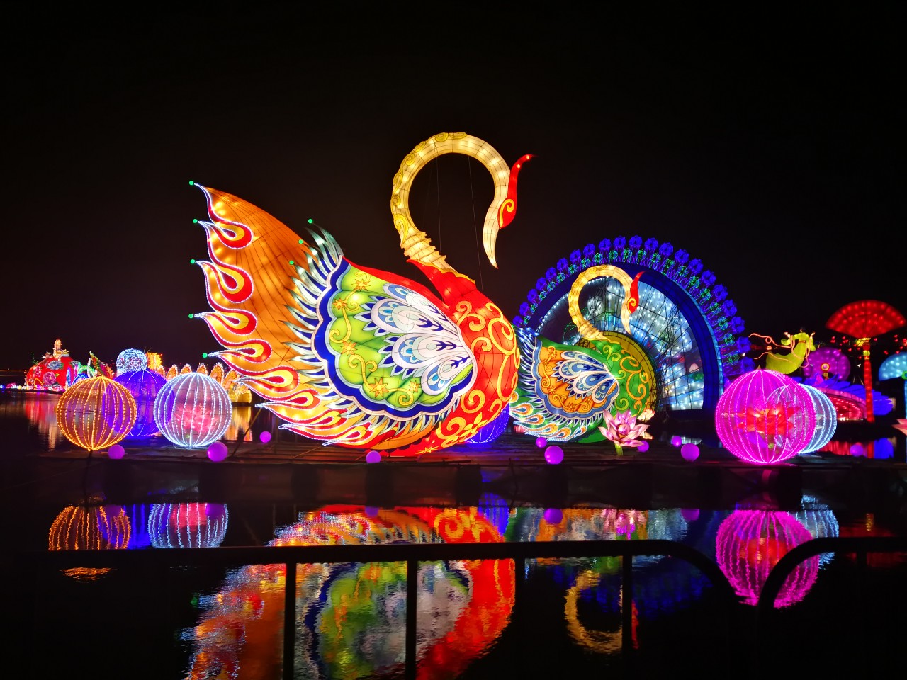 本次灯会以“紫琅灯、中国年”为主题,130余组彩灯由200位自贡彩灯工匠亲赴南通中创区精心制作,充分凸显了自贡彩灯“高大新奇美”的艺术特色。