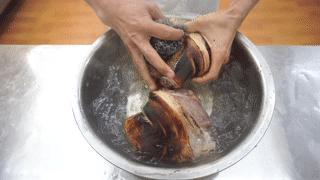 【2】同学们这一步的目的是破坏猪皮的汗腺去除腥味,也可以清洗干净之后再次烧黑再次清洗,二次处理可以更大限度的减少皮腥味。