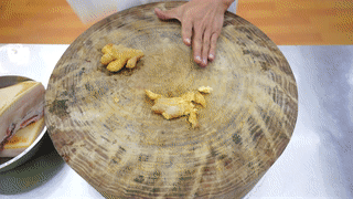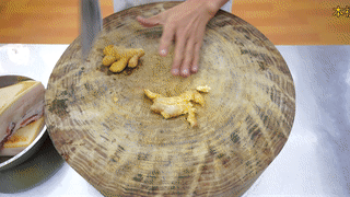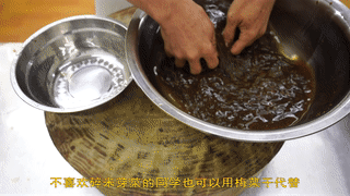 $ j& n0 B0 E7 }0 n. t2 L q【14】辅料捣碎之后加入适量的白糖拌匀备用。