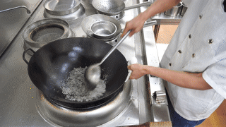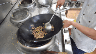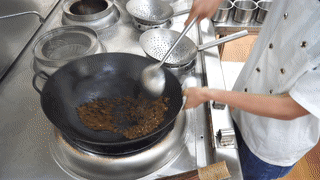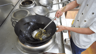 【18】然后用细的漏勺将残渣去除,这一步的目的是保证宽油没有糊味。