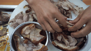 【20】然后将肘子的皮和肉分离下来。( I0 g: t7 g1 v: ?, d
