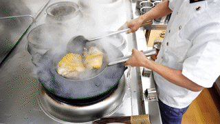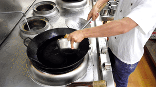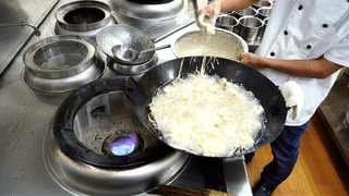 【7】中途加入适量的植物油,加植物油的目的是稀释淀粉之间的粘性,以防止原材料下锅抱团。