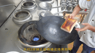 % h) ^3 H% u! D% J【2】大约3分钟之后将猪皮烙黄即可。