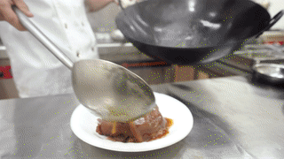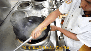 【32】汁水烧开之后加入适量的水淀粉把汤汁收浓,同学们注意收汁的时候必须锅离火,否则汤汁收不紧。+ G1 r7 }- L! E