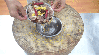 " [1 k. P: j& C8 H$ C4 j; x【10】所有辅料炒香之后再加入一大锅清水。
