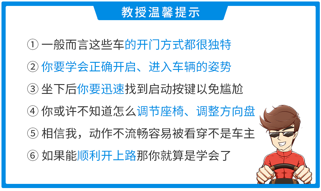 这两年下来,陆陆续续地教授也试驾了很多小众、有趣的车型,平日里,或许这些车都太冷门、太昂贵,让各位望而却步,不过今天教授要告诉你们一个有意思的事,那就是这些车即便白送给你,如果不经过学习研究,怕是你们也开不走、开不溜。 嘿,开局就先给各位来一款超跑级车型——迈凯伦 570GT (参数|图片)吧。 这款车上市之初的售价约300万人民币,看着很贵吧,但它也只是属于迈凯伦产品阵营中最入门也最走量的运动跑车系列(Sports Series)。 看过售价,想进车去体验一下吗?抱歉,首先你得知道怎样正确开启、关闭这辆车的车门。 三百余万的花费,换来的是一具拥有570Ps最大马力、600N·m最大扭矩的双涡轮增压V8引擎,是3.4s的百公里加速,是碳纤维单体壳座舱,当然,更是一经开启就能让人血脉喷张的蝴蝶门。 没错了,这种蝴蝶门的设计确实很拉风,此般福利,你买一台入门级的法拉利或兰博基尼是无法享受到的,不过,你确定知道正确进入驾驶席和关门的姿势吗? 开门的时候可得注意,首先开启按键是与车侧夸张的空气动力学设计融为一体了,别摸半天找不到。其次,开门的时候别使劲往外扒,也别瞎用力提,应该先往外拉一点,再向上提起。 手短的驾驶者,很可能坐进去以后就再也,再也,再也关不上车门了,别问我怎么知道的。 所以,正确的进入姿势,应该是单手握住内门把手,然后俯身弯腰,先单腿迈进驾驶席,然后在收拢另外一条腿坐进去的同时,借助体重把车门拉下来关上,整个动作要一气呵成,不然很容易让人看出你不是车主。 启动按键、驾驶模式选项、挡位选择,都在你大腿右侧中央通道这块,不用多说了。 然后应该是调整座椅了吧,你一定会用左手顺势向着坐垫外侧摸索,结果发现半天也没找到座椅调整按钮。抱歉,英国人就是这么有执念,他们把座椅调整模块设计在了内侧,也就是你需要用右手去向下摸索,太反人类了! 这样看来,开上路应该是不难了,教授再教你一些高阶操作吧,例如“弹射模式”。你只需要挂入D挡,按下换挡区的LAUNCH键,然后同时踩下加速和制动踏板,踩到底,Hold一下就可以了。 前提是,你能像教授一样,有机会去试驾一辆迈凯伦570GT哈。 前面说到了迈凯伦570GT独特的开门方式,在教授试驾过的种种车型中,当然不乏开门方式新颖的车型,例如劳斯莱斯的 曜影 (参数|图片)、 魅影 (参数|图片)。 实际上,马车式对开门是劳斯莱斯长久以来都坚持着的经典设计,这在如今形形色色的车款中也算是独树一帜的存在。 曜影、魅影在国内的指导售价都是500万人民币起的,这么贵的车,怎么可能没有无钥匙进入?所以你只需轻握外门把手,无需任何复杂操作,拉开车门即可,只要记住前后门的开启方向,因为是对开门设计。 重点在于,你坐进车内后,应该怎样正确地关门?因为劳斯莱斯被戏称为“自杀式”的车门是可以开启到90度的,那这个时候无论在前排还是后排,如果你要伸手去够内门把手,绝对会有失优雅。 劳斯莱斯当然不会让你如此难堪,所以你能在前排A柱下沿、后排C柱附近找到车内电动关门按键,轻轻一按,车门就会关上了,便利也雅观。 劳斯劳斯采用的都是怀挡设计,这个与我们平时见惯的奔驰车款大同小异,就不用过多介绍了。 唯独要提醒各位的是,坐在曜影、魅影车内,你必须花时间去熟悉如何在车内判断距离,因为劳斯莱斯特殊的车身设计:车身与车轮高度经典的2:1比例、长引擎盖、短前悬、长后悬、优雅的锥形车身和高腰线。 由于体积大,也比一般轿车高,所以初初上手,很难在车内判断位置和车距等,这么贵的车,剐蹭了可就麻烦大了。 上面两款都是超跑、超豪华车款,大家在真正驾驶使用的过程中,还需要很注意这些车“稀奇古怪”的配置。但下面这款车就没那么多X事儿了,因为它简单得就如同一块铁皮包着一台发动机。 Exige (参数|图片) S,是路特斯(莲花)家族中最强调运动与性能的车系,属于品牌性能代表之巅。但为这些高性能,车主也需要付出“惨痛代价”。 Exige S没上面两款车那么奇特的开门方式,但要坐进去实属不易,你总是很难找到一个正确的进入姿势,座舱很低,门槛宽度有很大,上来就很不友好。 而车内的给人的感觉更是太Boring了,出于轻量化需求,我们能见到能用上的,基本就只是两张很薄、不能调椅背角度的座椅,一具不可调的方向盘,永远无法清晰收音的收音机,以及制冷效果奇差的空调。 你肯定未曾想过,一辆跑车也能充当一具良好的健身器材,为提供纯粹的驾控感受,Exige S的方向盘是没有助力的,能想象吗,倾尽全力去完成一次原地打轮的苦役,一天下来,我的肱二头肌竟然初现完美雏形。 Exige S的车身很小巧,非常有趣的是,若以它为参照,一辆911摆在旁边,都会看似是Panamera,在它身边的车辆,都能获得车型级别提升的BUFF,就好像红绿灯前,我们通过车内视角,误把隔壁的途观认成途锐一般。 也正因为车身小巧,在车内,我们能够非常轻松地从驾驶席,跨过中央通道,去控制副驾驶的车窗升降,毕竟,两边车窗的升降按键,都只能在各自的门板内侧上找到。 外后视镜角度的调节也是需要手动操作的,当然了,我们能够扳动自己这一侧的后视镜,而另一侧则需要副驾驶人员帮忙了。 诸多不易,让这具驾驶机器看似让人不想轻易靠近,但实际上,正是这样的纯粹和简单,打动了教授,如果说要选一辆2019年驾驶过的让人印象最深刻的车,教授会选这辆Exige S