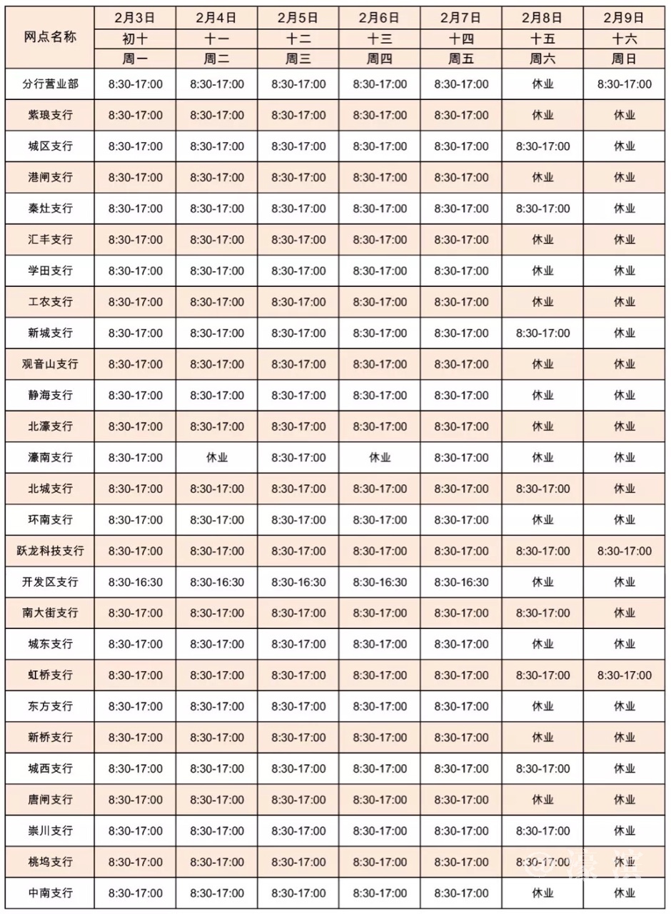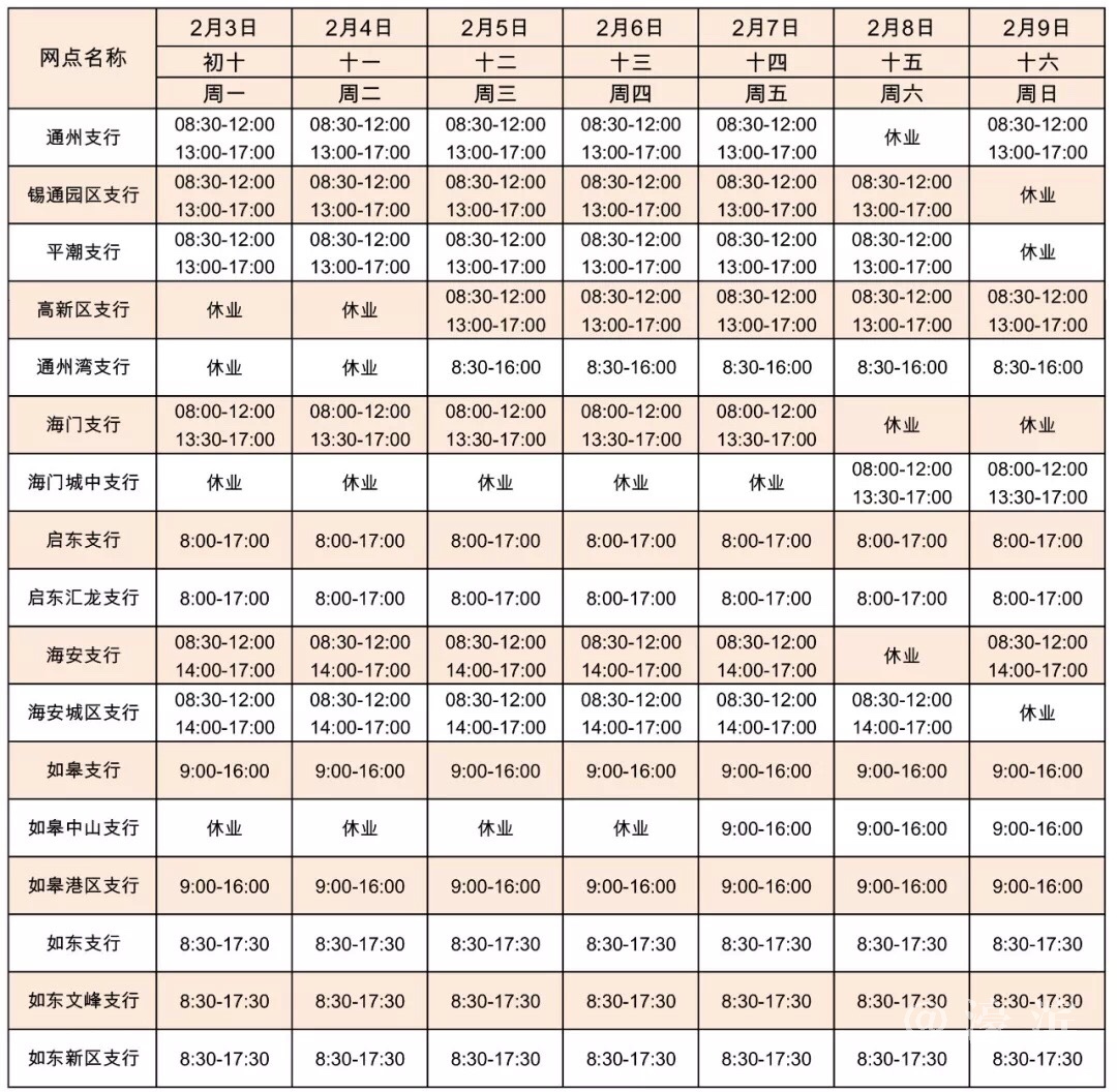 江苏银行南通分行关于2月3日至2月9日营业网点及时间的公告 |