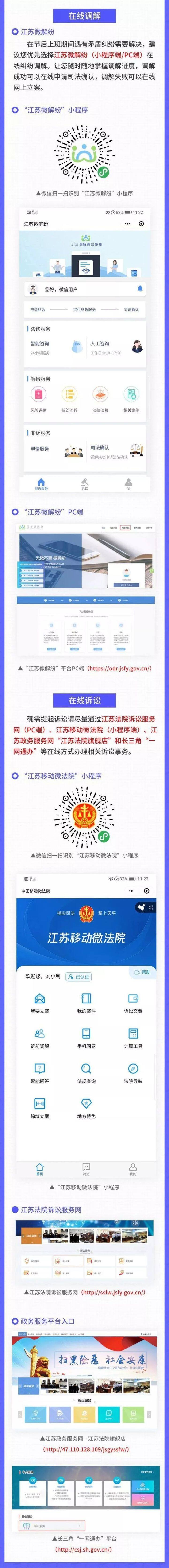 4.在线调解。建议优先选择“江苏微解纷”(http://odr.jsfy.gov.cn/)(PC端和小程序端)在线调解纠纷。
