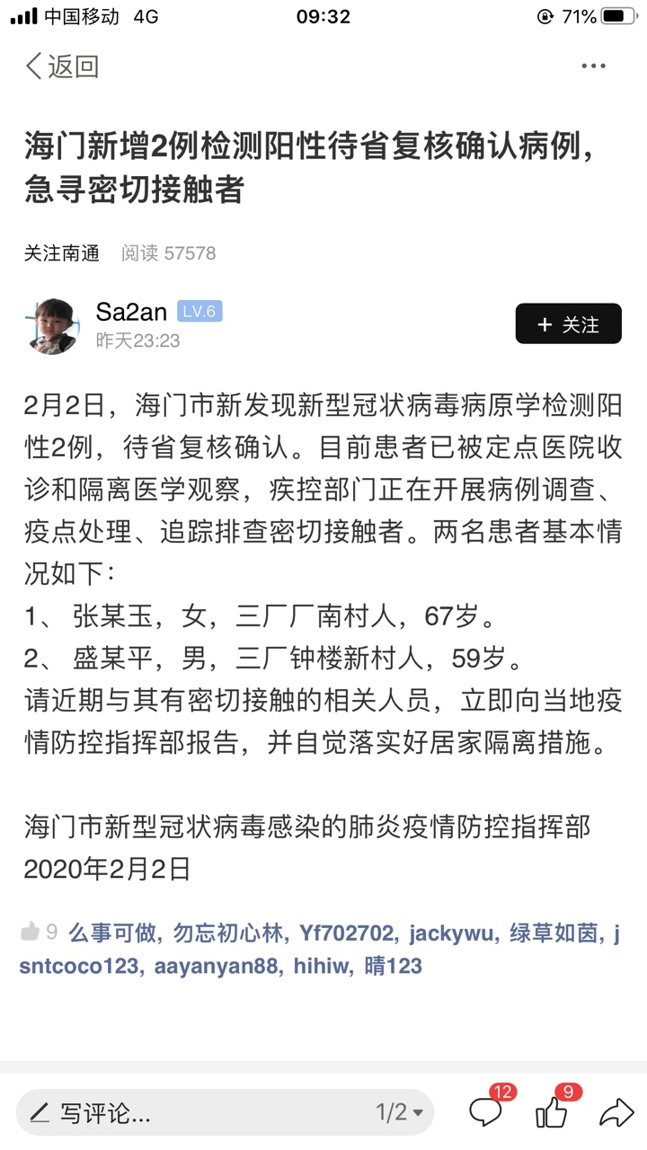 [随便港港] 南通新增2例!累计19例!江苏新增35例新型冠状病毒感染的肺炎确诊病例(2.3) |
