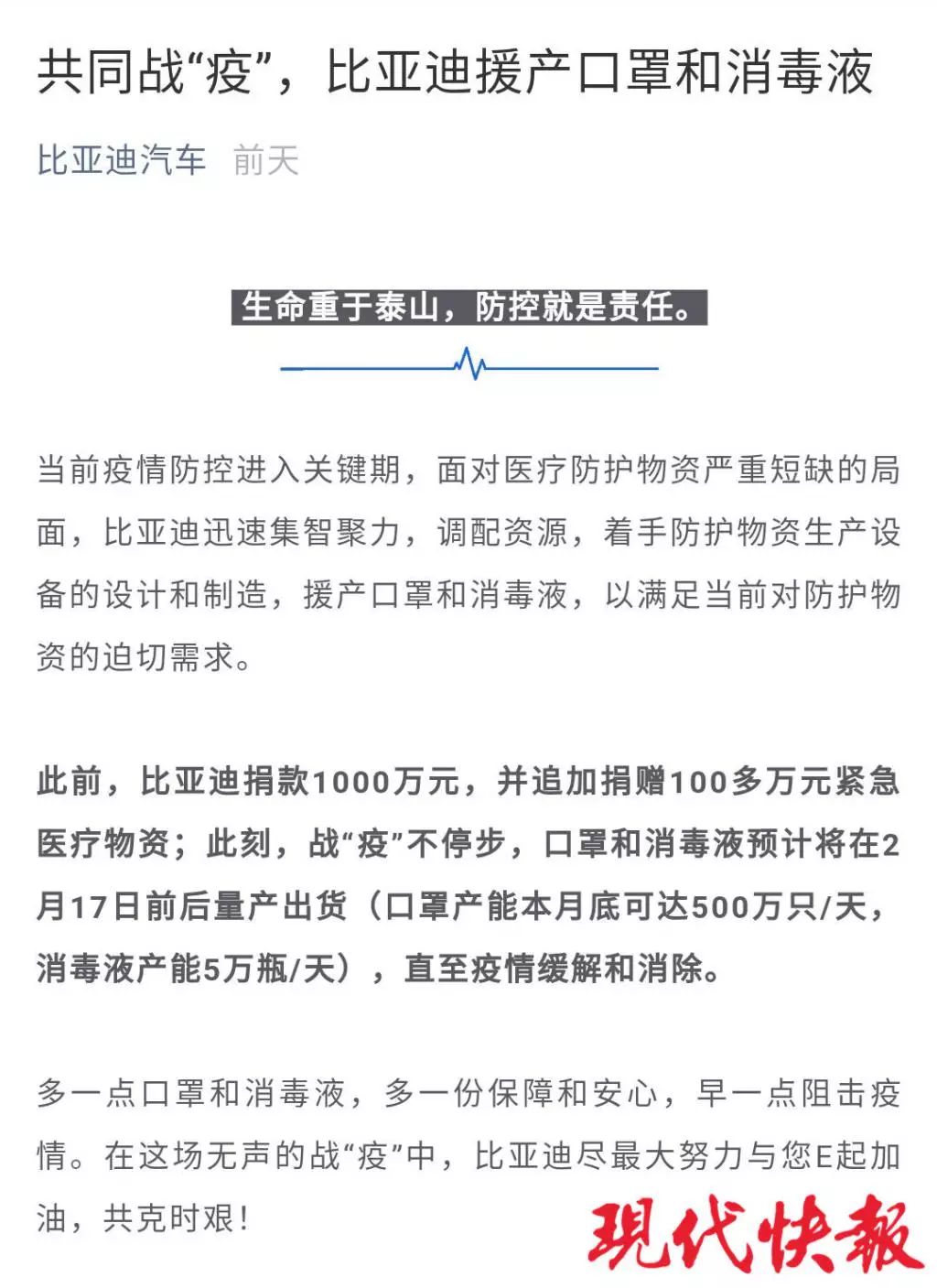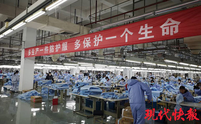 现代快报讯新冠肺炎疫情发生以来,口罩、防护服、酒精等医疗用品奇缺,国家发改委等三部委日前发文,鼓励企业多措并举扩大重点医疗防护物资生产供应。现代快报记者了解到,近期江苏多家公司宣布转产“抗疫”,西服、羽绒服、农药、尿不湿等生产企业纷纷跨界,原本停产防护物资生产的企业也再次开足马力复产。随着多家企业的密集复工,口罩等相关医疗物资紧缺的状况也有望得到缓解。 △红豆防护服生产线【拓宽范围】 从西服、羽绒服到防护服,江苏多家服装企业紧急转产 江苏的服装纺织企业众多,在医用口罩、防护服等物资紧缺的情况下,不少服装企业也加入转产行列。 2月3日下午,位于无锡的红豆股份首套防护服下线。红豆自2月1日决定停工西服生产,改为生产防护服,在最短时间内生产出了一般防护服。2月5日,第一批1000件一般防护服发货,目前,公司一般防护服日产量接近1万件。此外,公司的运动服车间目前也改造生产隔离衣,而医用防护服的生产资质正在申请当中。 另一家从高档西服转做防护服的是江苏阳光集团有限公司,研发出了一款采用薄膜复合技术,强力高,穿着舒适,具有较好的防渗透性,可满足于医院系统以外的海关、社区、交通卡口、检查站等工作人员的穿着防护服。据悉,该集团新投入的三条防护服生产线,已于2月8日正式上线,日产2000件防护服。 △波司登防护服生产线位于苏州常熟的波司登公司以生产羽绒服闻名,这次也加入到生产防护服的行列。仅用两天时间,公司将原本分散在各区域的 35台设备集中到一个车间,并向政府提交复工申请。2月6日起,防护服生产线正式开工,日产防护服1500到2000件。 常州新北区的新兴服装也在最近紧急复工转产口罩。这家企业本是专做外贸服装的,经过几天的努力,2月8日,公司的一次性医用口罩试产成功。南京的卡思迪莱服饰也在第一时间招回员工500多人,不计成本采购最新关键设备,生产防护服,目前日均产量已近3000件,首批合格防护服已运往湖北。 △连云港柏德实业 企业供图【换生产线】 农药生产线改造后生产酒精,尿不湿生产线开做口罩 不仅纺织服装行业公司“秒改”生产线,尿不湿生产企业也来转生产线了。连云港东海柏德实业2013年落户东海经济开发区,早在2017、2018年,该企业连续上了3条用于制作幼儿尿不湿原料的生产线,原本计划今年再上2条生产线,机器设备都已购置好。没想到疫情突然发生,柏德实业在大年初三就将原有2条生产卫生面料的生产线全部改造,投向重点防疫物资口罩面料的生产中。 位于南京江北新区的南京际华5302公司,也在月初加入了转产生产防护服的行列。南京际华5302公司主要负责人称,1月31日,公司接到市国资委要求,开动防护服生产。2月3日下午,近200名工人就投入到了生产当中。目前,机器24小时运转,公司医用一次性防护服日产可达3000件。 2月8日下午,一辆装满医用酒精的大货车发往湖北孝感。这是南京农药生产企业红太阳集团紧急加班生产出来的。据悉,疫情发生后,江苏阳光集团有限公司第一时间启动防疫防护服转产项目,新投入的三条防护服生产线,近八分之一的产能,实施技术改造,快速形成针对本次疫情的防护服有效产能。生产线已于2月8日正式上线,每日可生产2000件防护服。 △阳光集团图 图片来源:“文明江阴”微信公众号【重启复产】 “救活”停产企业,开足马力再生产 位于扬州市邗江区沁康防护用品有限公司,原本两条口罩生产线已经停产三年,而从大年初三开始,这两条口罩生产线发出轰鸣复产了。公司克服原材料、人工等方面的重重困难,生产的医用口罩可达到N95的防护标准,只用10多天时间就平价供应市场30多万只口罩现。 把原本停产口罩的企业救活,江苏盛虹集团只用了4天时间。现代快报记者了解到,苏州刚松防护科技股份有限公司是家医护用品生产企业,此前因债务危机,于2018年下半年停产,已停工570天,并于2019年底开始破产清算。盛虹集团了解到情况后,紧急拿出3000万元专项扶持资金,并派驻专人协助刚松公司开始采购生产设备、原料物资。仅仅花了4天时间,就“复活”了这家企业,2月3日重新开始生产口罩,第一条生产线每天可生产KN95口罩2万只,一次性无纺布口罩10万只。 【责任担当】 企业纷纷加入“抗疫”阵营,扛起社会责任担当 很多行业转产防疫物资,甚至连车企都来了。比如比亚迪汽车、上汽通用五菱等也都发布相关消息。现代快报记者还了解到,生产汽车织物的常州上市公司旷达科技,近期也将他们在柳州的一个子公司改为生产口罩。 如此多的企业紧急转产酒精、防护服等防疫物资,在业内人士看来,实际对业绩正面影响都不大,甚至可以说企业是做出了不小的牺牲。在现代快报记者的采访中,很多江苏企业都表示,转产是出于社会责任的考虑,国家有难,企业必须扛起社会责任的担当。 现代快报记者了解到,近期国内上千家企业的经营范围新增了“口罩、防护服、消毒液、测温仪、医疗器械”等业务,其中不乏很多已经火速转产成功的,这也带动了很多抗疫物资相关联上下游企业的复产复工。而随着更多企业投入到“抗疫”生产中,相关医疗物资紧缺的状况也有望得到进一步缓解。 现代快报+/ZAKER南京记者 谷伟 王天驰 张瑜 见习记者 潘荣 (编辑 陈海静)