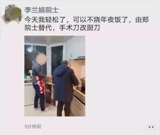 今天我轻松了,可以不烧年夜饭了,由郑院士替代,手术刀改厨刀。