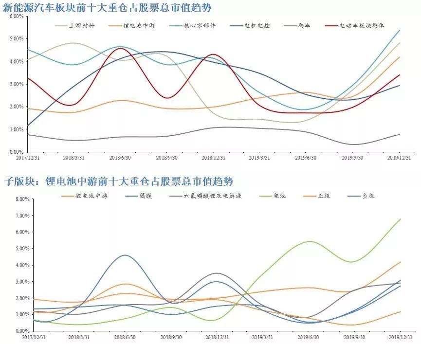伴随着特斯拉复工的利好消息,新能源汽车题材一步成为市场最热主题。 同时,新能源汽车基金正在密集入市,争着站上风口。 2月10日,平安中证新能源汽车产业ETF上市交易,该基金为目前全市场首只新能源车行业ETF,跟踪中证新能源汽车产业指数,今日表现喜人。 2月10日午后,华夏基金也公告称,正在发行的华夏中证新能源汽车ETF(场内简称:新汽车ETF)本周五将提前结束募集,网下现金认购的截止日提前至2020年2月14日(含2月14日),网上现金认购的时间提前至2020年2月12日、2月13日、2月14日。 新能源汽车何以如此火热?业内人士认为,除受特斯拉相关产业链发展影响外,新能源汽车板块还有多重利好加身。 首先,通过发展新能源汽车可以促进产业资本转型到新能源方向上来,倒逼国内的能源产业加快转型升级。 此外,新能源车长期仍将受益于我国汽车保有量的提升,千人保有量从横向比较来看仍有较大的提升空间。 另一方面,新能源车是全球性产业机遇,目前中国已经成为新能源汽车最大的消费市场,在未来环保排放压力趋严,国内车企严控燃油车产能以及传统车企加速电动化的大背景下,新能源汽车市场的增量空间巨大。 从去年开始,新能源汽车板块就成为了公募抱团的新宠。东吴证券研报显示,2019年四季度公募对新能源汽车持仓明显提升。 其中上游材料由三季度的2.74%上升至4.82%,钴锂龙头持仓明显增加。其中主要持仓增加来源于天齐锂业6.09%(+3.32%)、赣锋锂业4.33%(+2.92%)、华友钴业11.70%(+2.55%)等。 中游各环节持仓均增加,增幅从大到小依次为电池、负极、隔膜、正极、六氟磷酸锂及电解液。其中电池上升2.58%,亿纬锂能四季度公募持仓占比13.14%(+6.91%),宁德时代持仓占比为4.03%(+2.23%)。 电机电控四季度公募小幅上升,前十大基金持仓比例上升至2.94%(+0.62%),汇川技术持仓为5.48%(+0.65%)。 核心零部件、整车公募持仓大幅上升,充电桩小幅上升。其中三花智控2019Q4持仓占比6.22%(+3.45%),宏发股份2019Q4持仓占比5.89%(+1.73%),比亚迪持仓占比0.32%(+0.07%)。 _ 广发证券在研报中也指出,当下新能源车处于政策回暖刺激下分母端驱动的行情,随着新能源车产销量拐点出现,预计下半年基本面持续好转,行情的驱动力转向分子端,有望成为贯穿全年的投资机会。 嘉实智能汽车基金经理姚志鹏认为,新能源车在未来两年内会进入到一个全面爆发的时代,2020年只是刚刚开始。同时从产业趋势来看,电动车板块已经启动了,全球会有十年左右电动化的周期,而且是可持续的。 , b$ w0 \1 ^3 C" F+ m6 p% O