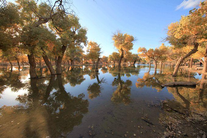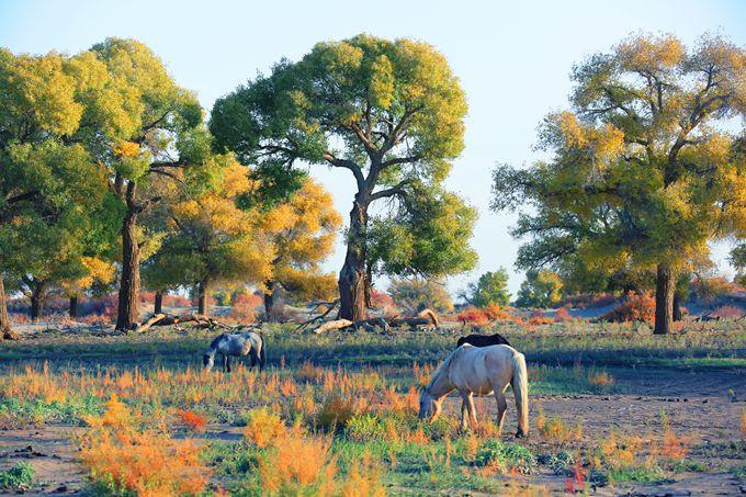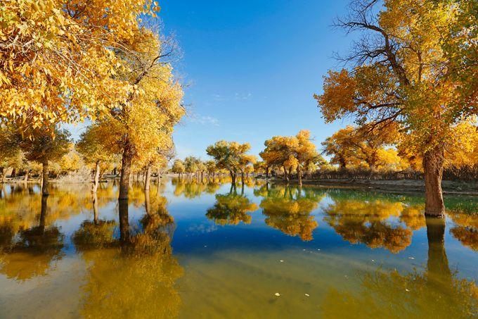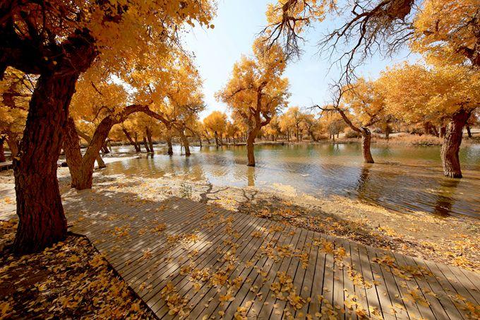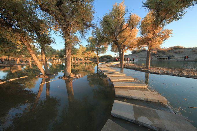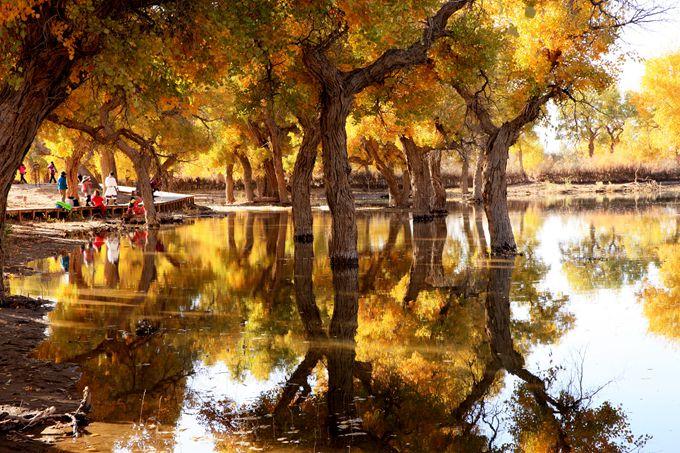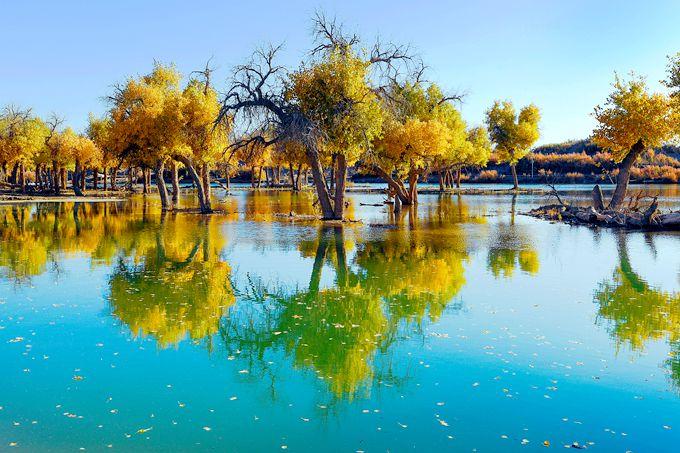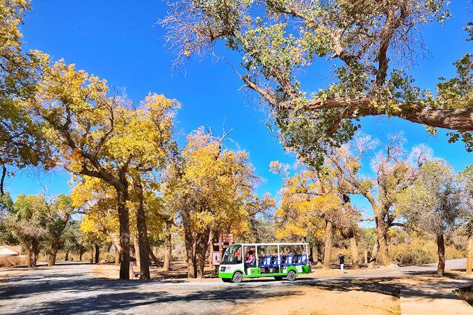 很多人在看过电影《英雄》后,都会记得其中最为绚丽的一幕镜头,在一片金黄的胡杨林下,落叶飘零,张曼玉穿着红衣在其中随风舞剑。于是,很多人便爱上了这一片金叶翩飞的盛景,额济纳胡杨林也成为众多人秋季想去旅游的地方。 内蒙古自治区阿拉善盟额济纳旗的秋天被称为有中国最美的秋色,每年的深秋都有众多的游客和摄影爱好者慕名前来,欣赏这里震撼人心的美景。 在额济纳河两岸,分布着当今世界上仅存的三大原始胡杨林之一,大漠胡杨林景区就是其中重要的组成部分,另两处是北非的撒哈拉沙漠和新疆塔里木盆地的塔克拉玛干沙漠。很多游客会选择自驾来到这里,在景区中有自驾车营地和贝壳屋酒店,可以停车和住宿。 大漠胡杨汽车自驾运动营地是大漠胡杨林景区的重要组成部分。营地是集旅居车宿营地、别墅营地、猎户座帐篷营地、贝壳房营地、特色蒙古包营地等多种营地。 大漠胡杨林景区位于内蒙古自治区阿拉善盟额济纳旗达来呼布镇,这里是国家4A景区,集沙漠、弱水、红柳、怪树、胡杨林于一体,拥有神奇的自然景观和独特的人文景观。 每年的9月中旬,这里的胡杨树叶就会逐渐变黄,在蔚蓝的天空下,这一片胡杨林就如同金黄色的水彩渲染了整个额济纳。来到这里,可以在游客中心乘坐电瓶车,进入这一片千年大漠之中。 与荒凉的大漠相伴有人说胡杨是痛苦的,因为它们太寂寞了;也有人认为它们是幸福的,虽然寂寞,但是可以为大自然渲染出动人的美丽画卷。 额济纳的秋天“晴空万里蓝镶白,胡杨浸秋入人怀。”胡杨林充满了神奇,它们活着千年不死,死后千年不倒,倒后千年不腐烂。很多人都知道胡杨林的生命非常顽强,但只有亲临这里才会发现,它们是如此的震撼美丽。 在额济纳其实不止有胡杨,还有成群的骆驼、牛羊和额济纳河,额济纳河又称黑河,古称弱水,"弱水三千,只取一瓢",指就是这里。远古走来的额济纳河不仅孕育了胡杨林,更孕育了神秘璀璨的居延文化。 在额济纳567万亩的天然胡杨林中,有很多上百年的胡杨树,其中一棵被称为“神树”的胡杨树龄将近900年,神树高23米,主干直径2.07米,需要六个人手拉手才能围住,堪称额济纳胡杨树之王。 蒙古民族有当地的习俗和信仰,树龄长的胡杨树也被赋予神秘的色彩,是当地老百姓祭祀苍天神灵的附载物。 只可惜并不是每一颗胡杨树都能够长寿,它们大多数都会在岁月的轮转中渐渐枯萎,死后千年不朽的胡杨林以千姿百态的形状,透出一股恐怖又令人心醉的气息。 也就是我们常常看到的,在沙漠的黄昏下,各种奇形怪状的胡杨树干,或仰天或挺胸的屹立在沙漠之中,不肯倒下,仿佛在战场上拼到最后永不放弃的战士,充满了悲壮的苍凉。 胡杨是杨柳科胡杨亚属植物,早在《汉书·地理志》中便有对它的记载。胡杨是荒漠和沙地上唯一能天然成林的奇异树种,被称为大漠之魂, 在额济纳流传着这样的一句话:“如果你恨一个人,就在春天带她来额济纳,因为春天的额济纳风沙肆虐、气候恶劣,如果你爱一个人,就在秋天带他来额济纳,因为秋天的额济纳景色最迷人。” 在弱水河畔,静观千亩胡杨岛,环河小径串起一望无垠芨芨草胡杨,仿佛身心也融入了这片大自然之中。 从没有一个地方,可以如此荒凉,也从没有一个地方可以如此美丽。两个极端,碰撞出的就是不可思议的风景。这里每天都在上映着枯萎与繁华,脚下是荒凉的沙漠,眼前是绚丽的秋色,一步天堂,一步地狱,这就是额济纳,一个不同寻常的地方。 土尔扈特人家是额济纳土尔扈特部后裔保留比较完整的日常居住之所。土尔扈特蒙古族在清朝时期是我国西部蒙古族的四大部落之一,17世纪30年代,土尔扈特部举部西迁到伏尔加河流域。清康熙三十七年(公元1698年),土尔扈特部不堪忍受沙俄帝国的压迫,开始了漫长而苦难的东归之路,成就了土尔扈特部东归的传奇历史,这是中华民族的宝贵精神财富,是民族团结的和平典范。 交通:景区的主入口位于旗政府所在地的达来呼布镇。 飞机:景区距额济纳机场8公里,在酒泉市、嘉峪关、银川也都有机场,也可从西安转机到额济纳桃来机场。 火车:外地游客可乘坐飞机到呼和浩特转乘火车抵达额济纳火车站(景区距离火车站仅4公里,10来分钟车程);或者抵达嘉峪关、银川等地中转。 汽车:一般都是抵达银川后,乘坐银川到达阿拉善左旗巴彦浩特镇的长途车,再从巴彦浩特镇乘坐抵达额济纳的长途车。 旅行最佳时间:每年的9月中旬到10月中旬