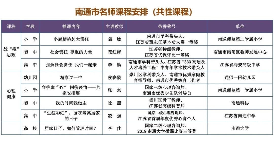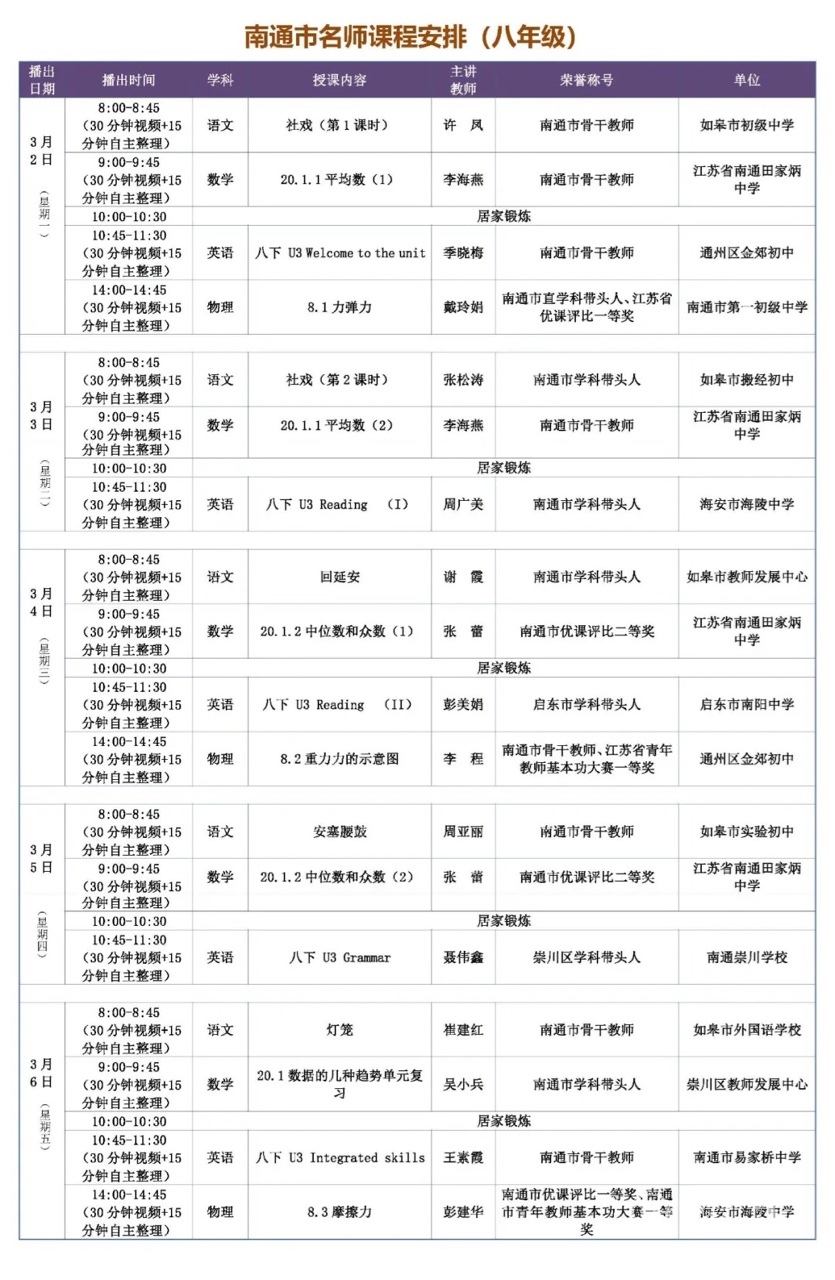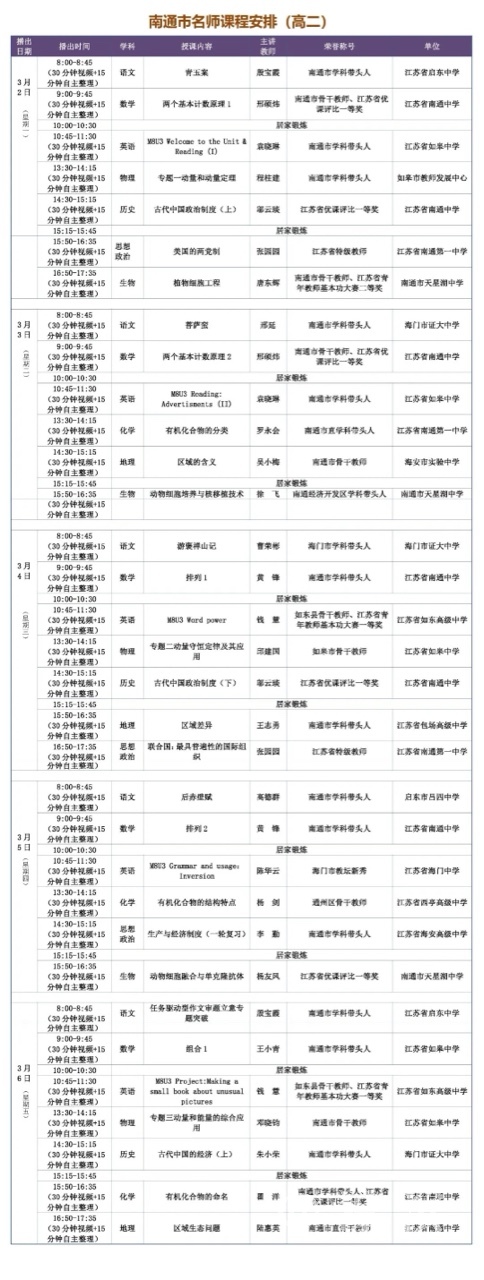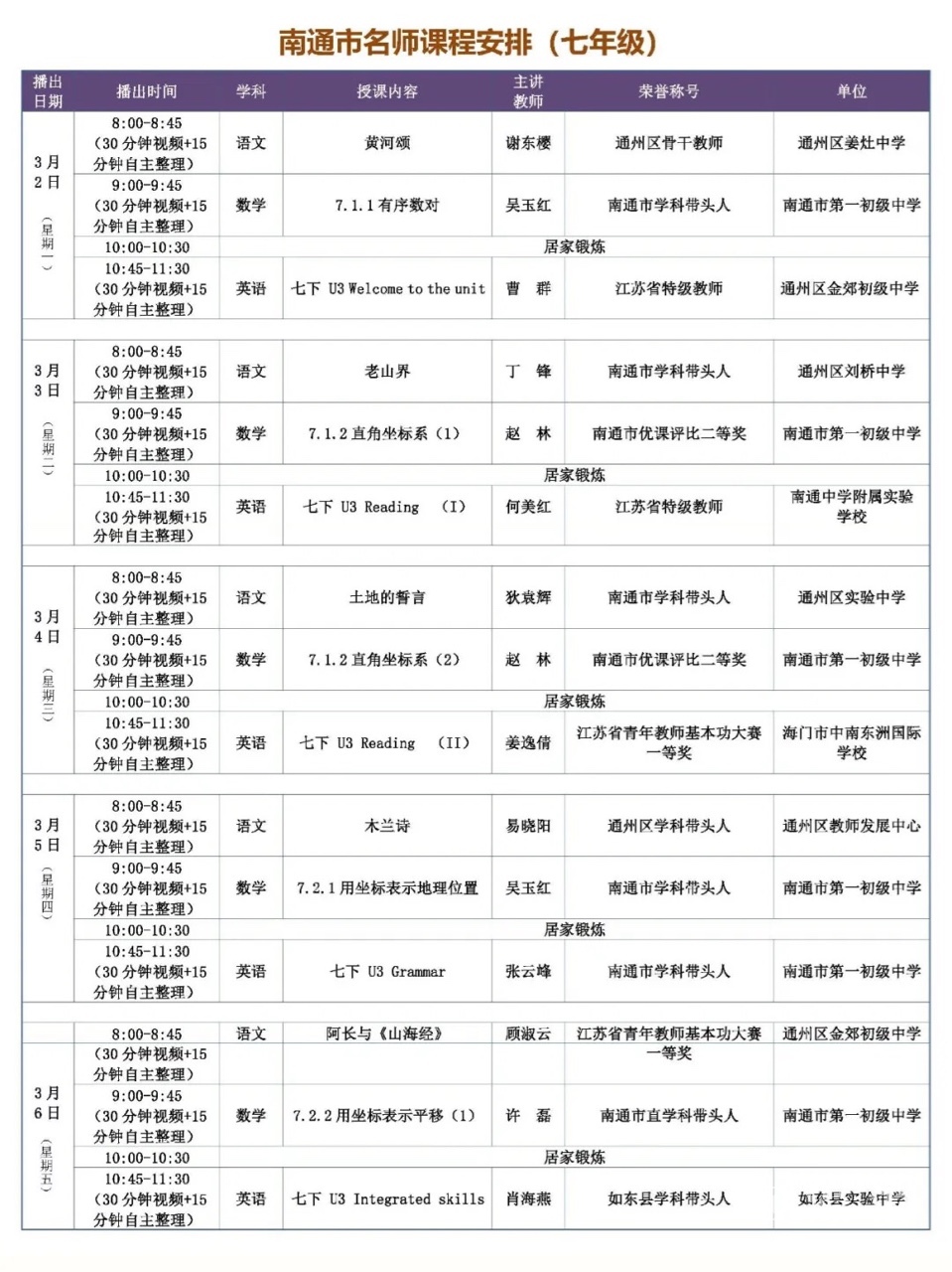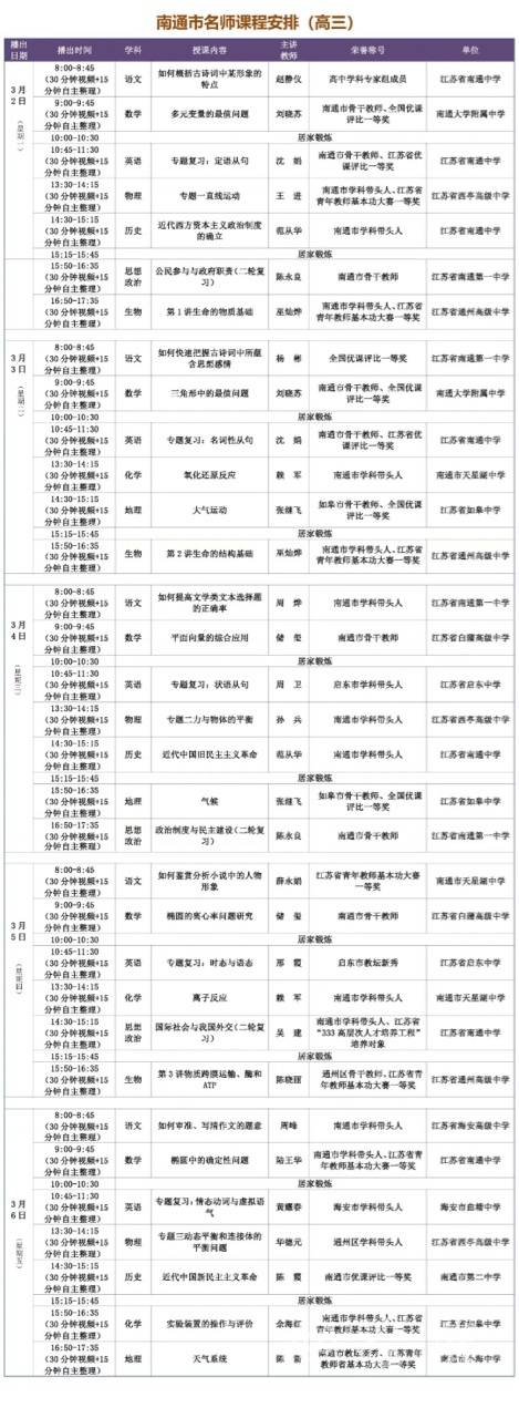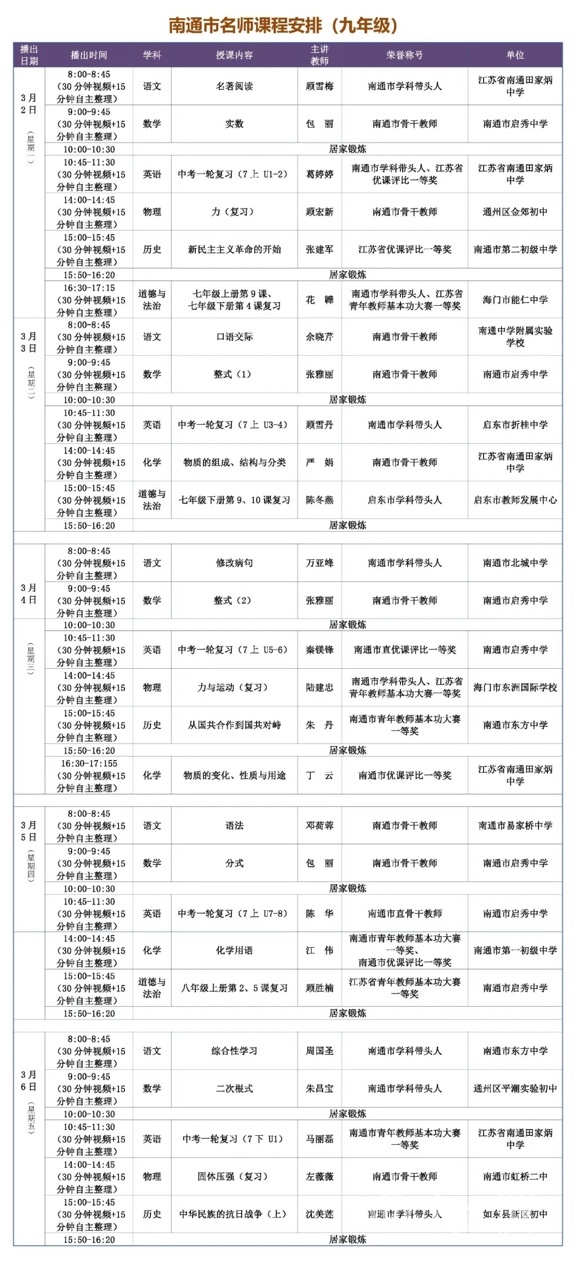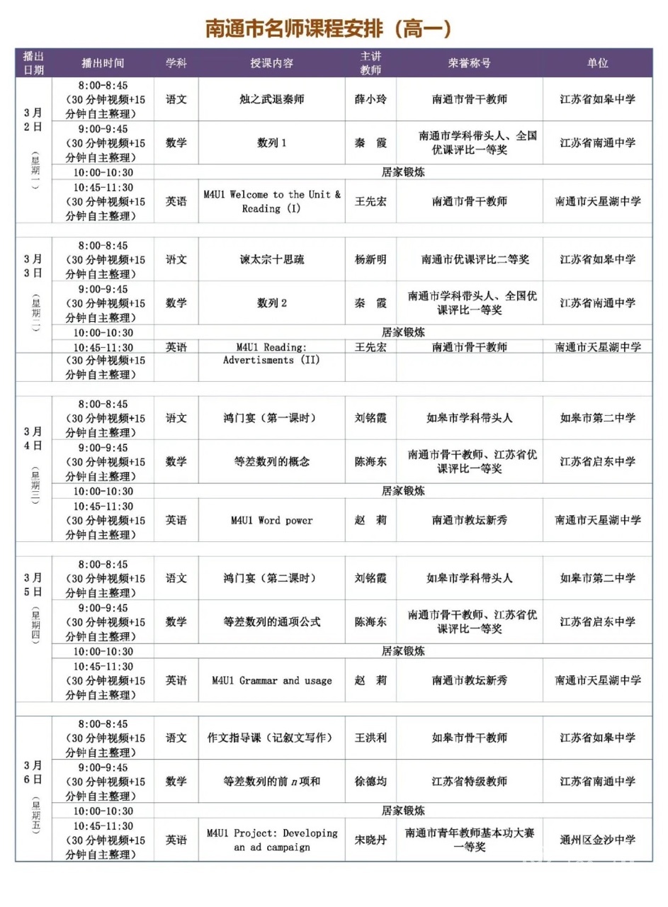 [新闻快讯] 南通市教育局公告:3月2日起继续线上教学,课程安排出炉 |