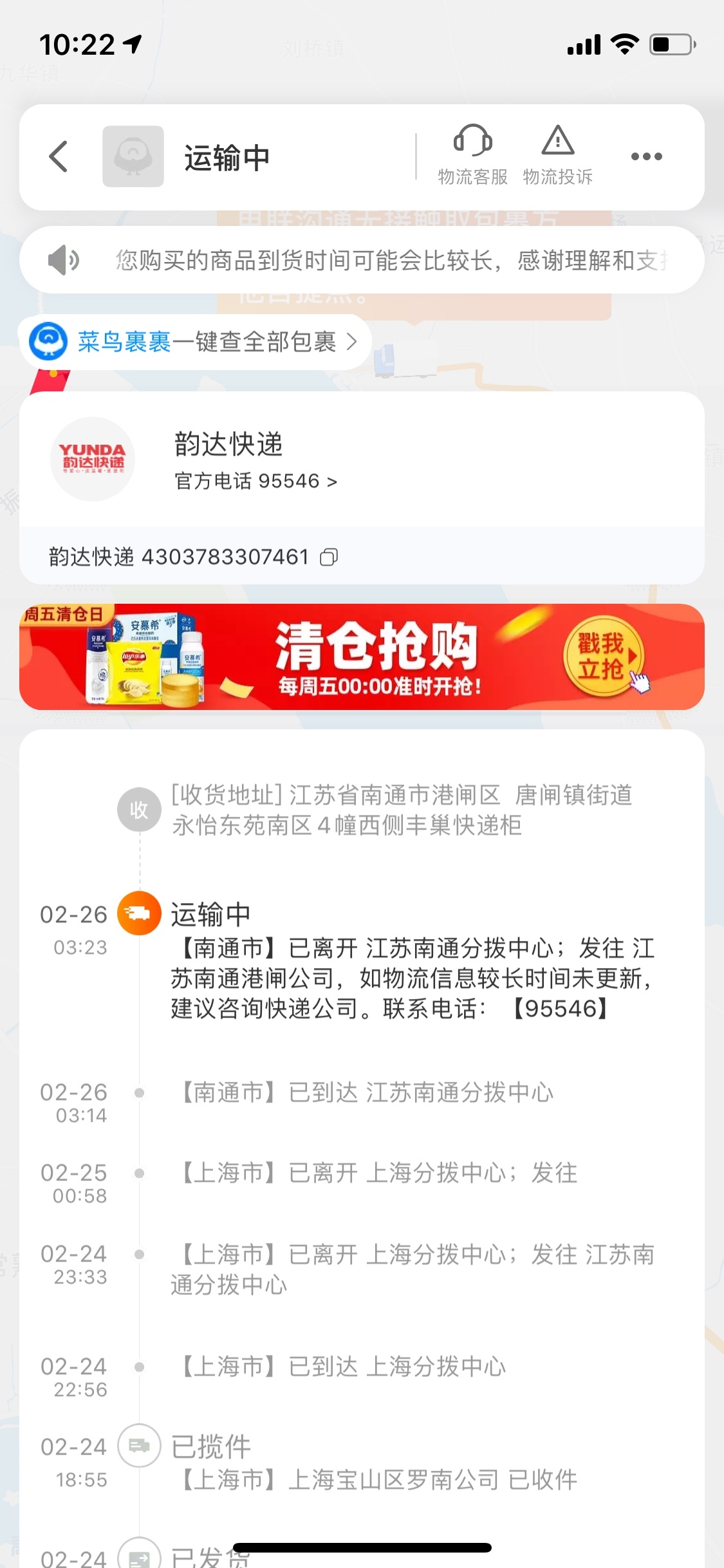[随便港港] 韵达快递到达南通本地三天不派送! |