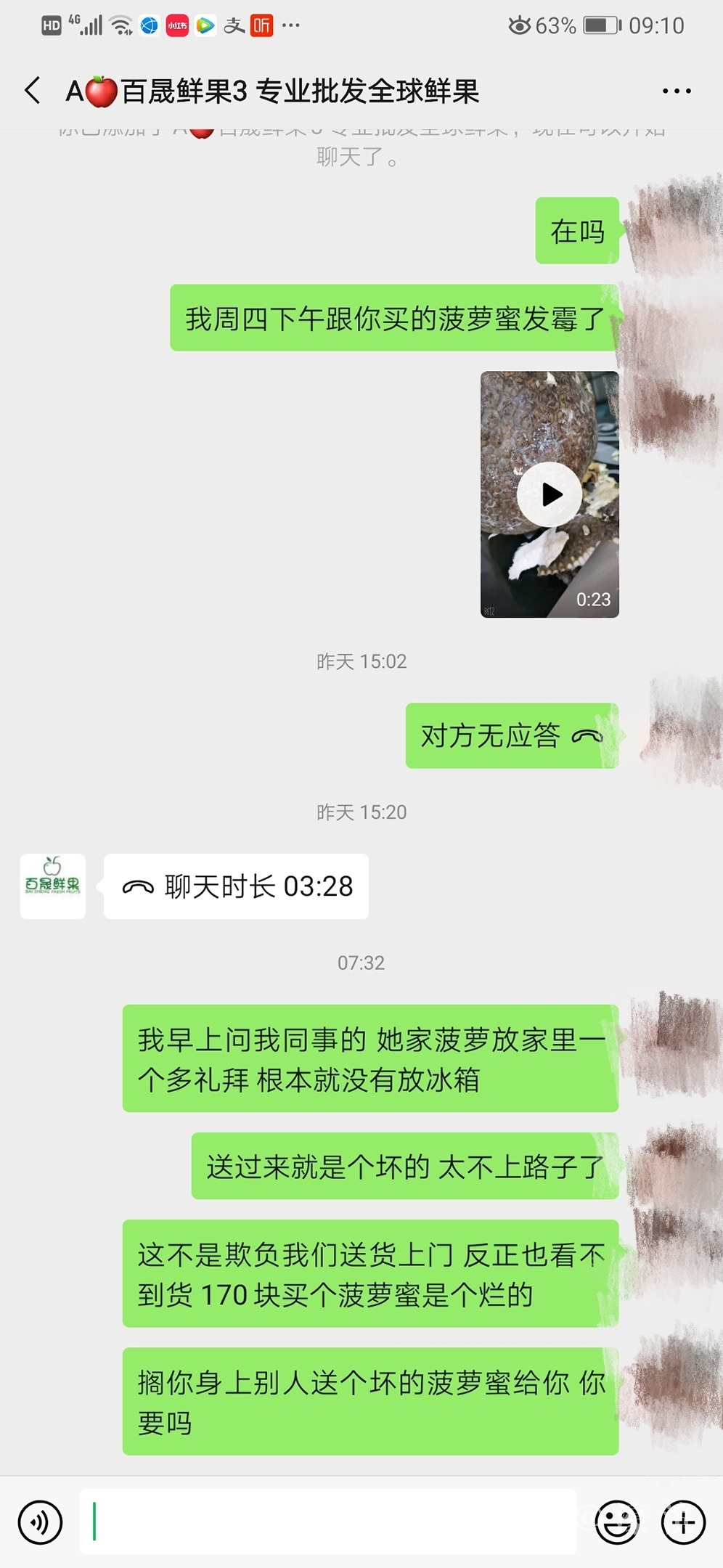 [随便港港] 买水果还是建议大家去店里买@百chen @百晟水果 外卖送的发霉水果 |
