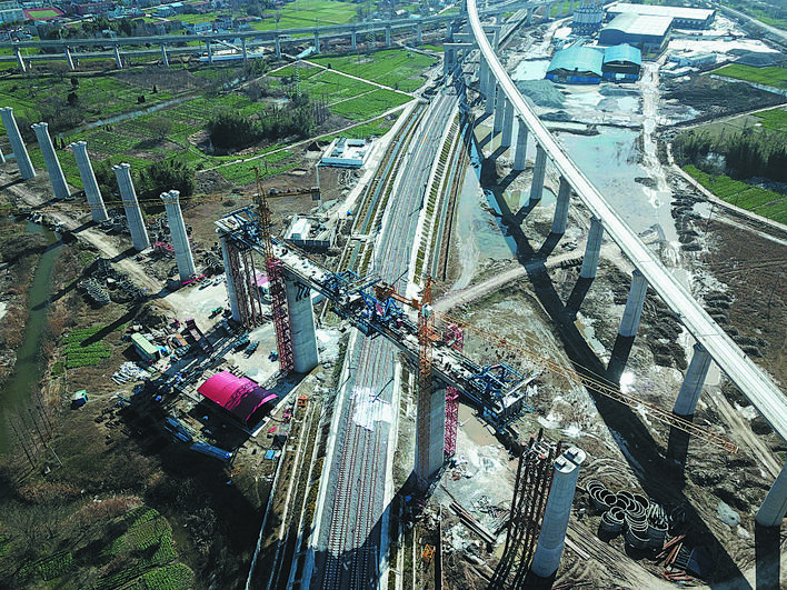 盐通铁路上行线跨沪通正线路基连续梁复工后率先施工。 3月1日,复工的第10天,盐通铁路和通张铁路项目工地上热火朝天,铁路建设的“春耕曲”已然在江海大地奏响。自2月21日起,中铁二十四局盐通铁路7标和通张铁路1标项目就正式复工了,当日有15个工点复产。截至昨天,两个项目的施工产能已经恢复至75%以上。 盐通铁路是国家“八纵八横”高铁网的第一纵沿海铁路的一部分,连接盐城和 南通两个沿海城市,第 7标工程长19.86公里,其中主跨132米的跨九圩港连续梁为全线控制性工程,也是项目部正式复工后率先施工的工点。 通张铁路作为盐通铁路的延长段,其中第1标工程长6.97公里,由左线跨越沪通高铁合为双线桥后接入沪通铁路长江特大桥,其长江大桥北引桥桥墩高均在30米以上,高空作业安全风险大。 新冠肺炎疫情发生以来,中铁二十四局盐通铁路和通张铁路两个项目部高度重视疫情防控工作,严格按照地方政府和业主关于疫情防控和复工复产的要求提前谋划,并一一落到实处。 为确保全年任务如期完成,盐通铁路项目部和通张铁路项目部积极优化施工方案,调整施工组织,对照年度目标,倒排工期计划,责任分工到人,不断加大人员、设备、材料投入,利用劳动竞赛、大干百日等激励手段,充分激发全员活力,提升施工效率,缩短施工周期,把疫情耽误的时间抢回来。