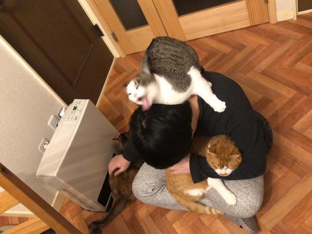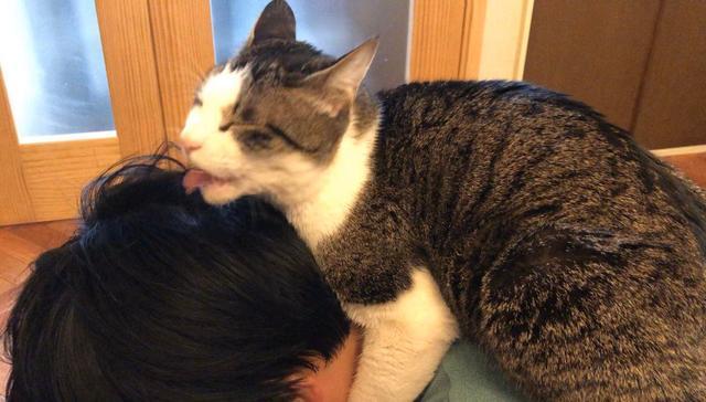 作为一枚实打实的猫奴,每天总会琢磨着怎么讨猫咪的欢心吧,毕竟俘获高冷猫咪的芳心并没那么容易啊。 所以,能拥有一只粘人的猫咪,就成了很多猫奴的梦想。日本的一位大叔注定要被很多人嫉妒了,因为他不仅有三只猫,其中一只还疯狂迷恋着他呢! 01 猫咪总舔毛,大叔一头秀发亮了 这位大叔的三只猫咪,分别是一只橘猫,一只狸花猫,还有一只狸花白,其中,咱们今天要介绍的主角就是下面这只看着眉清目秀的狸花白猫啦! 这只猫咪看着挺可爱的吧,但是它却硬生生把自己一副好好的皮囊给“糟蹋”了啊!这是咋说呢? 因为它平时的表情,真是一言难尽…… 还有这样的…… 说到它的表情失控的巅峰时刻,那肯定是它逮着主人给他舔毛的时候! 原来,这只猫咪可是大叔的疯狂迷妹,一有空就会蹦到主人头上,给主人舔毛……舔就舔吧,这表情管理可实在太糟糕了! 也许真的太沉迷于给主人舔毛这事了, 所以这猫咪一旦开始舔毛,就停不下来,表情还无比酸爽,主人想把它拽下来都难! 这小舌头给飞甩的,也不知道这大叔的毛有没有给舔掉…… 瞅瞅大叔给猫咪折腾的,都翻车了! 不过,大叔倒是爱猫之人,虽然被猫咪“滋扰”得厉害,但也是认命了……可是某天他一照镜子,却惊喜地发现,自己的头发被猫咪连续舔了好多天之后,竟然变得异常柔顺! 可把他给得瑟的啊,感叹自己四十岁的年纪,头发还能有光环!不得了不得了! 这大叔还调侃道,猫咪的口水一定有对头发的有益成分,还建议把含猫咪口水的洗发水商品化…… 其实从大叔美滋滋地晒猫咪的“舔毛成果”来看,他的确是猫奴没错了啊,而且,大叔也是实力宠猫了,还一直坚持雨露均沾,3只猫咪一起宠,这画面实在太美! 啧啧,这情景,得招多少人嫉妒啊! 不过话说起来,猫咪的口水真的能让头发更顺滑么? 02 猫咪给主人舔毛,也许是甜蜜的负担 猫咪给自己舔毛,的确能起到清洁、梳理毛发的功能,但是舔的对象从自己的毛换成铲屎官的毛,这效果还真是不好说!至少,目前也没有相关研究表明猫咪的口水有利于人类头发的保养(估计,也不会有人研究这个课题吧……) 不过,这口水能不能帮主人保养头发是不一定,但是会对主人产生威胁却是大有可能的! 这是怎么说呢? Floyd Dewhirst教授,是福塞斯研究中心细菌遗传学家,同时也是哈佛大学的口腔医学教授,他经过研究发现,人类口腔中约有400-500种细菌,而猫咪口腔中则有大约200种,可这么多细菌里,同种的细菌大约只有15%。 也是因为人类和猫咪的细菌生态系统完全不同,所以猫咪一次无意中的舔舐,是有可能给人类带来数百万没接触的细菌的,而且,这些细菌是有可能突破人类的免疫防线,让人类受到感染的。 事实上,被猫咪舔过伤口后,细菌进入血液造成感染的事例也的确发生过,让猫咪舔自己还是有一定风险的。 但是,如果主人自身免疫系统没有问题,而且皮肤没有外伤的话,给猫咪偶尔舔上一口也不必惊慌,记得及时做好清洁就可以了。 值得注意的是,婴儿和老人的免疫系统并不如健康成人,所以最好还是不要让猫咪给他们爱的亲亲哦! 那猫咪经常自个儿舔自个儿,口水涂满身的,咱们是不是也不能摸猫了呢? 这倒是大可以放心的,因为猫咪口中的细菌在它们的毛发上能存活的时间并不长,有研究团队更是对此进行过实验,一个人在抚摸猫咪的毛发两分钟后,只有大约150个细菌经由抚摸转移到他事先已经做好消毒的手上。 所以,在抚摸猫咪,和猫咪互动完后,及时洗手,还是很安全的! 不过,经常跟猫咪进行亲密接触,例如让猫咪给自己舔毛,或者亲亲,还是能免则免吧,毕竟各种风险还是存在的嘛! 那怎样和猫咪互动是比较安全,健康的呢?有没有什么其他禁忌? 03 和猫咪玩耍,安全必须第一位 这里所说的安全,其实是双方都要照顾到的,也就是铲屎官要安全,猫咪也要安全,这样说起来,就有几个方面的注意事项了。 1、不要把自己的手纳入到猫咪的玩具行列。 很多铲屎官会很自然地把自己的手给猫咪玩,例如让猫咪轻咬,踹踢,其实这样做会让猫咪误以为主人的手可以玩耍和攻击,一不小心就会发生咬伤,是有安全隐患的。 2、慎选玩具。 在给猫咪选择玩具的时候,应该避免选择那些有细小易脱落零件的玩具,因为这些小东西容易让猫咪误食,会伤害到猫咪的身体。 3、不要让猫咪有幅度过大的动作。 虽然猫咪身手灵活,但是一上一下或者突然拐弯等动作,还是有可能对猫咪造成扭伤或者脱位等意外伤害的,能免还是免了吧。 4、不要在不适当的地方玩耍。 例如未封闭的阳台,会容易发生坠落;例如户外,如果猫咪长期生活在室内,到了户外可能会受到惊吓,玩耍过程中就容易走丢,而且一不留神还可能会遭受到交通事故,更有感染疾病的风险。 和猫咪玩耍的方式有很多,但是铲屎官可千万要把握好一个度哦,一定要注意安全,适度吸猫,你好我好,猫咪好嘛!