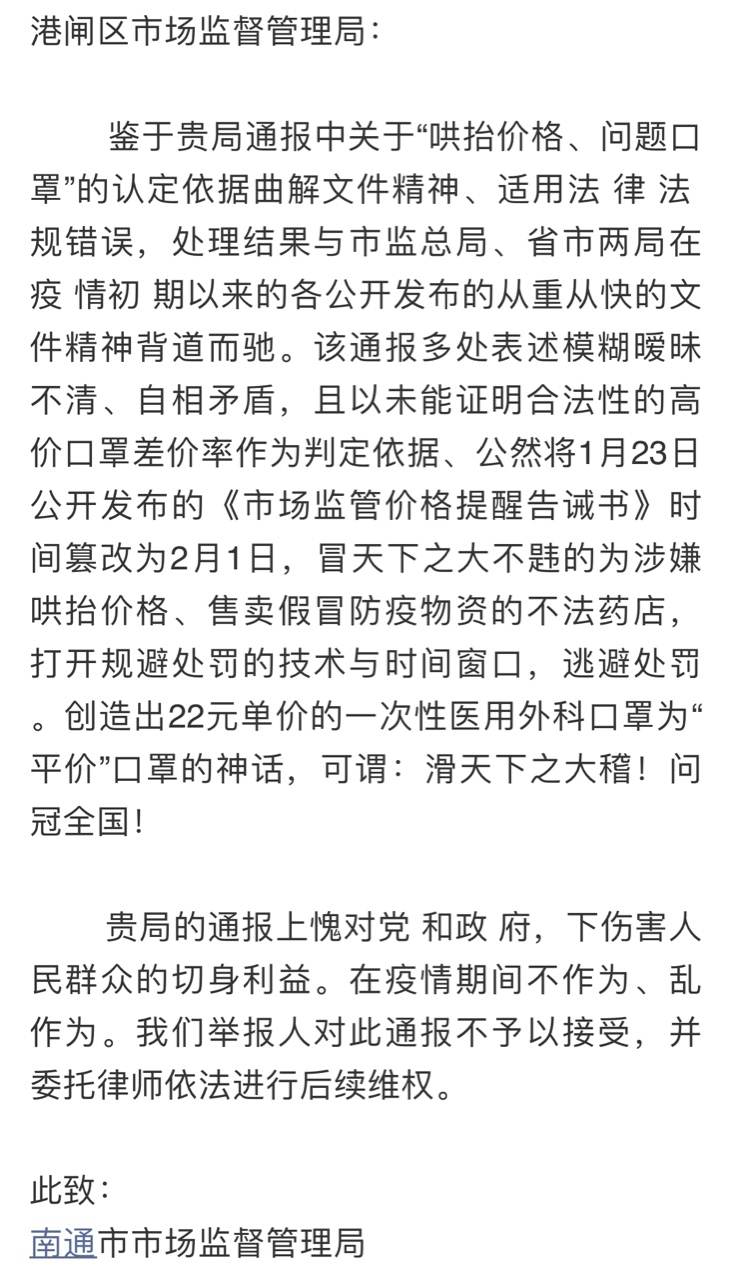 [百姓民声] 关于对网民反映南通恒生堂大药房相关问题的调查情况通报 |