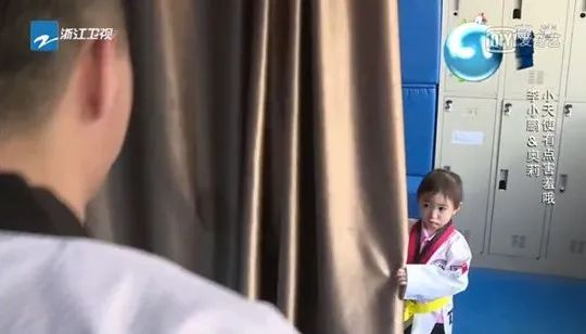 在《爸爸回来了》中,李小鹏带着女儿奥莉去跆拳道馆,但因为奥莉是第一次来这里,也没有女孩子陪她,所以一直躲在帘子背后不肯出来。