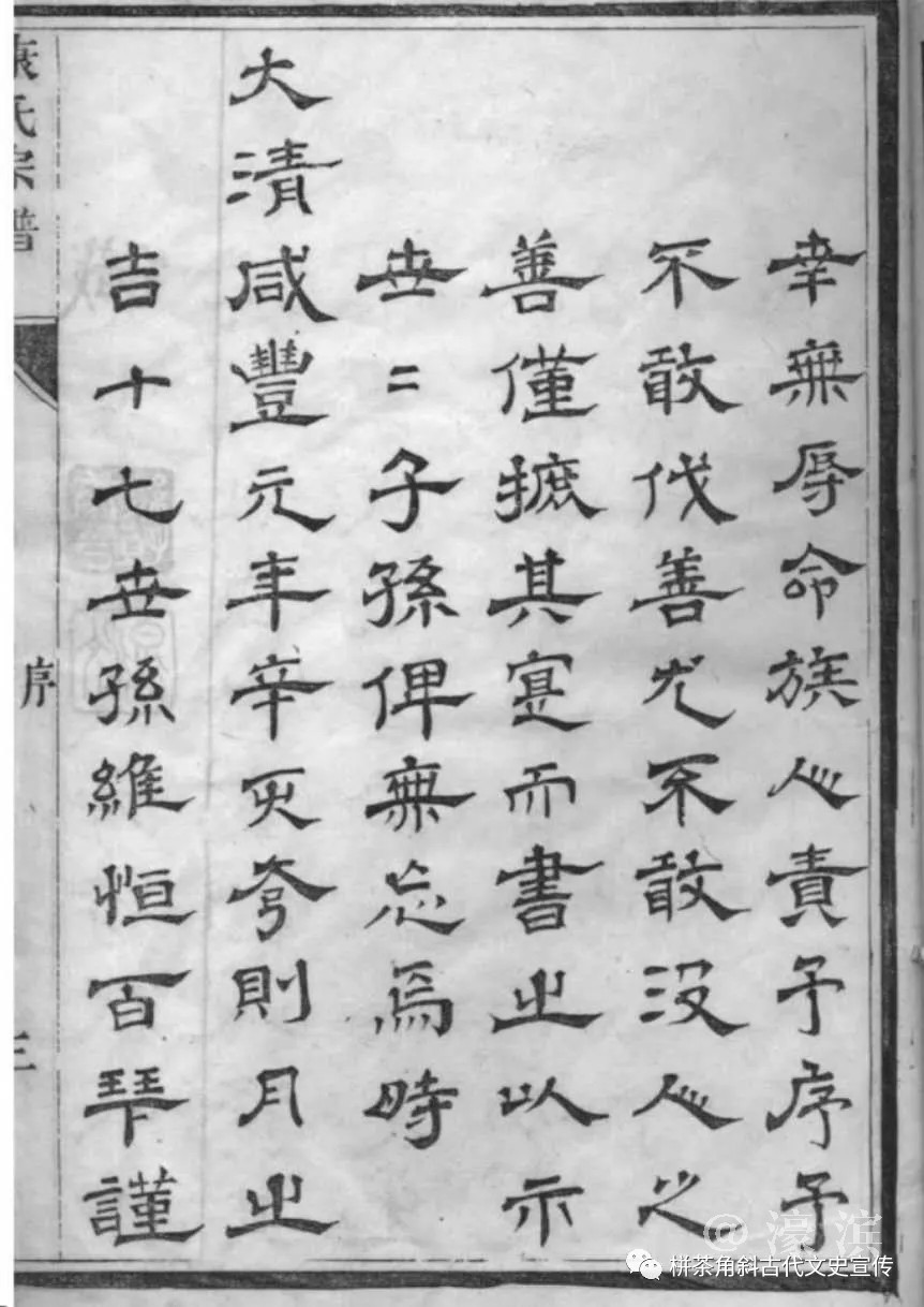 大清咸丰元年(1851)七月初一康维恒为栟茶第八次《康氏宗谱》的编修完成而作序 |