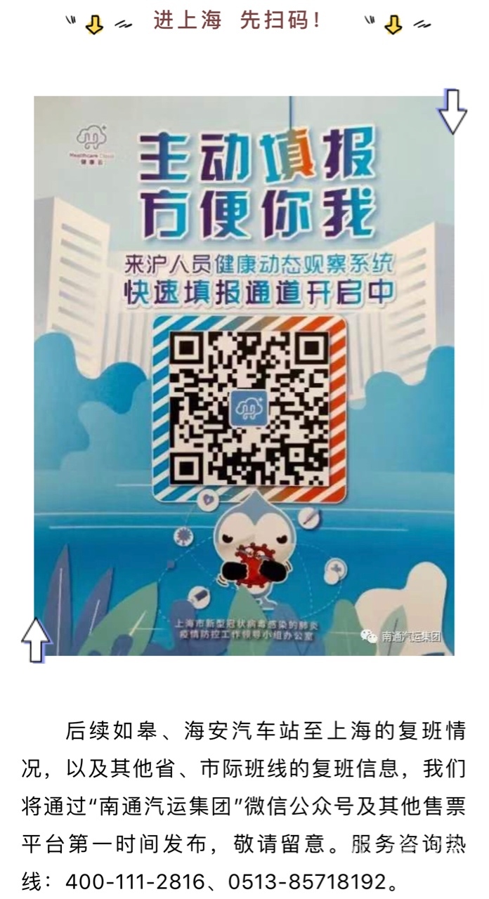 [新闻快讯] 南通客运班线复班通告:恢复开行上海客运班车(3.13) |
