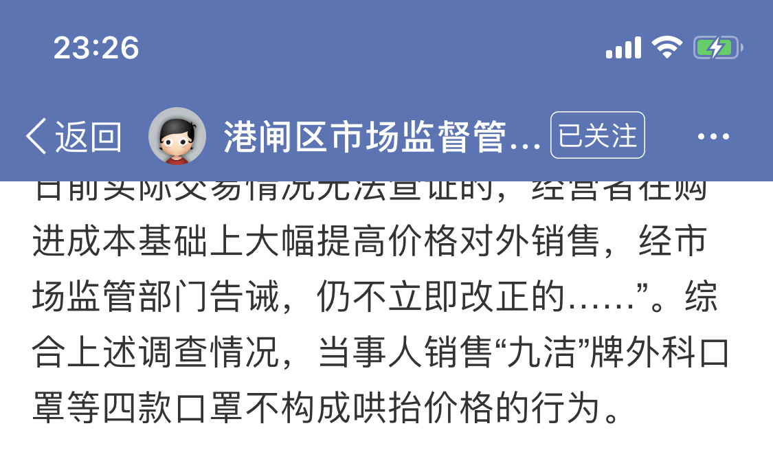 “追江赶海,敢为人先”的气魄在江苏省南通市港闸区市场监督管理局身上得以淋漓尽至的体现。你们不仅创造了一个口罩的价格神话,也为全国因哄抬物价被处罚的商家,提供了反盘的“案例”。一个市属区的市场监督部门,把国家总局、省市两级主管局的文件、通知精神自由裁量,玩弄于股掌。置三级部门于高阁,让港闸法制小王国独立于华夏。这样敢为人先的胆量从何而来?