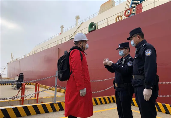 △对上下外国船舶的人员实现严格管理 内部“安全五件套”,外部“一天一通报” 3月11日下午3时,来自卡塔尔的“莫扎”号LNG轮靠妥如东洋口港LNG接收站码头。“这艘船半个多月前从装货港拉斯拉凡出发后,我们便通过船舶代理与该轮取得联系,要求他们每天汇报全部船员体温检测情况。”中石油江苏液化天然气有限公司生产运营中心海事港务主管吴小飞告诉记者,境外疫情输入风险增大,码头防控不可掉以轻心。