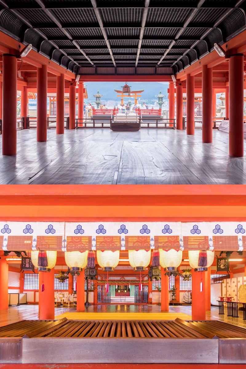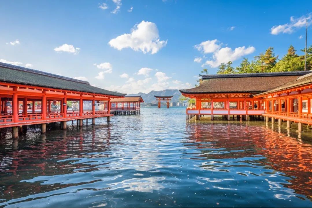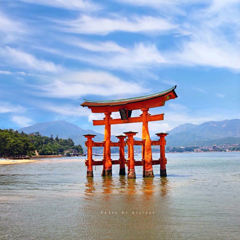 - w# P# T" D, w+ X* L) P提及广岛的第一印象 目光都会聚集在经典景点上 严岛神社、千叠阁、千光寺、福山城等这些景点 这些建筑保留着广岛历史和过去 古老而神圣 隐秘而伟大 让我们一起走进这些世界遗产 0 1 严岛神社 严岛神社,位于日本广岛县廿日市境内严岛上的一座神社。全世界都认得这座从海上升起的朱红色鸟居。每年有数百万人从广岛的海岸涌向这座小岛,惊叹于它的建筑之美,并沉浸在世界遗产的气氛之中。 当走近神社时,你会立即被鲜明的色彩给震撼住:建筑上辉煌的朱红色、海水的蓝绿色、以及弥山森林山坡上绿色和棕色的背景。