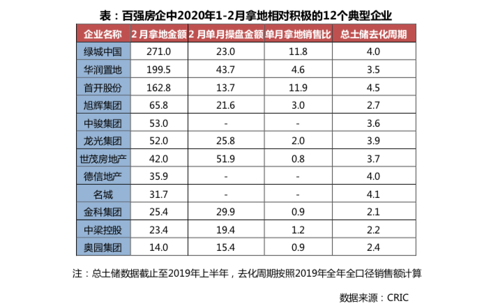 受到疫情影响,2月份土地市场成交总量同环比均下滑超过30%。同时由于房企销售几乎“停滞”,投资节奏、投资力度大幅放缓。但仍有部分房企“抢地”积极,“逆市拿地”的背后是“不差钱”还是战略需要?是趁机低价捡漏还是高位站岗? 克而瑞报告指出,在2月份市场整体冷静的表面下,部分企业已经先行积极拿地,从所获取的地块来看,主要以一线城市的优质地块、二线核心城市和经济基本面良好的三四线城市为主,且成交溢价率并不低,反映出当前土地市场存在一定的竞争情况,开发商对于城市、土地的选择也有较强的共性认知,对于预判前景良好的城市和地块,愿意逆市投资。 2月投资力度大幅放缓,单月销售TOP50过半数拿地为“零” 在疫情影期间,由于多城暂停或延迟土地出让,以及房企销售大幅放缓,企业投资活动明显减少。 第一,2月份土地市场成交总量同、环比均下滑34%和52%,降至一年来最低点。 第二,截止2月末,拿地金额TOP100企业门槛值仅有4.6亿元,对比2018年和2019 年同期分别下降10%和52%。 第三,百强投资金额较去年同期下滑15%,其中规模房企更为谨慎,销售TOP10企业1-2月投资金额下滑幅度超五成。 第四,前两月三成房企仍未拿地,其中2月销售TOP50的房企中有半数房企当月尚未纳储。 谨慎之下仍有12家企业积极拿地,绿城、华润、首开单月拿地超百亿 结合拿地总金额和拿地销售比来看,在市场供应逐步恢复之下,仍有12家企业2月拿地相较积极,大致分为两类。 第一类是绿城、华润、首开等国企、央企及区域扩张型企业。2月拿地总价超过100亿元,且远大于其1-2月销售金额。 一方面是国企背景加持,资金充裕、融资成本低,拿地更有底气,且在金额较大的优质地块上,采取了“强强联合、报团取暖”的合作方式。 另一方面,战略扩张的需要,促使绿城在“窗口期”持续加码投资。实际去年以来,绿城拿地一直保持积极态势,全年拿地金额近900亿,较2018年增长57%。2020年以来,在区域聚焦和城市深耕的策略下,加大了对一线城市的布局力度。 第二类是中梁、龙光、德信等区域聚焦的房企在其深耕城市拿地。虽然拿地金额尚未突破百亿,但拿地销售比均高于1。 从总土储来看,部分高周转企业去化较快,因此拿地补仓的需求仍在。此外从拿地的区域上来看,均聚焦在自身所熟悉的大本营范围内。中梁、德信2月拿地均集中在浙江,龙光则持续在大湾区投资布局。 拿地中五成位于一二线,三四线中温州仍被看好 从12家积极拿地业2月份拿地分布来看,分别有18%和35%位于一线和二线:一线城市中北京出让8宗不限价宅地属于稀缺资源,激发了开发商拿地积极性,华润、中交、北京住总、首开以联合体的形式包揽多宗宅地。此外大名城和旭辉分别拿下上海临港、安亭的两宗含宅地块。 二线城市土地成交主要位于中西部、珠三角和环渤海三个区域中,尤其南宁、福州和长沙成交建面最大。旭辉在南宁、长沙各拿下两宗大体量的商住地块。世茂在青岛通过收并购逆拿下近40万平方米的土储。 剩余的47%位于三四线,其中以长三角的三四线城市为主。温州2月份土拍相对活跃,12家房企拿地建面接近140万平方米。其中本土房企德信拿下两宗宅地,建面达到70万平方米,而中梁、绿城、世茂和旭辉均有所斩获。 这些房企在温州拿地溢价率大多数在3成左右,可见虽然温州在本次疫情中受到不小的冲击,但房企对温州市场总体还是持积极态度,看好疫情结束后市场会大概率反弹。 近四成地块溢价超30%,溢价虽高但较周边房价仍有盈利空间 从12家房企2月份成交地块的溢价率来看,底价成交地块仅占22%,8成地块均为溢价成交。且溢价率在10%以下占比17%,10-30%占比24%,溢价率30%以上的地块占比达到37%。其中金科、世茂、绿城的拿地溢价率整体较高。 以此来看企业在大多数竞拍时面临一定的竞争,且溢价率30%及以上的地块数量较多,这些积极拿地的企业并非都是“捡漏”拿地。 溢价拿地通常意味着风险也更大,但结合地块的房价地价比来看,整体风险可控。仅有三成土地的地价房价比高于0.5,大部分成交地块仍有相对较大的盈利空间,尤其是一季度拿地年内可以上市,也会提振房企今年的销售业绩。 房价地价比较高的土地更多的集中于三四线城市如温州、余姚、南通和扬州等,不少地块楼板价低于5000元/平方米,但地块周边平均市场价值取值均已突破10000元/平方米,有些甚至接近2万/平方米。 反之一二线城市地价房价比高,一方面是由于地价较高,另一方面是由于城市限价相对严格。对开发商来说在一二线盈利更考验企业的运营和产品品质,这也是国企在一线城市“抱团”拿地的重要原因。 从企业角度来看,中梁、德信、龙光等2月份投资的地块整体地价房价比处于0.3的警戒线之下,虽然有一定溢价,但盈利空间尚可。 克而瑞预测,随着疫情影响逐渐消退,土地市场可能会在政策扶持和供应增加的双重利好下迎来拿地小高峰,届时将有更多房企加入土拍大军,但拿地仍需谨慎,在保证地块盈利空间的基础上,选择基本面良好、有产业和人口支撑城市更能支撑长远发展。