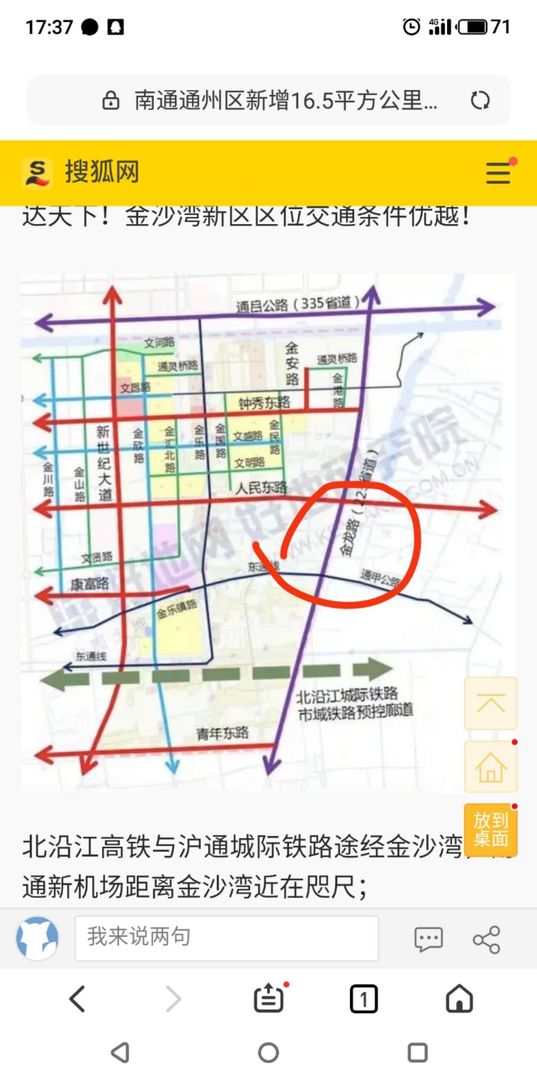 江海大道东延线往东终止至金龙大道,也就是传说中的的金沙湾开发的临界点,往北就是南山湖,往南就是大热的金沙湾,可以说完整地贯穿了整个通州主城区。
