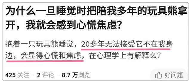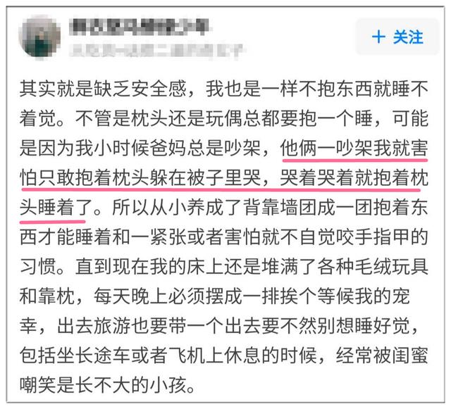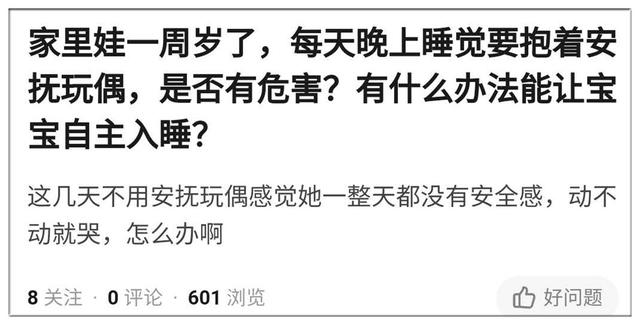 养娃那些年,妈妈们盘点过各种让自己头疼的育儿问题,而这些问题其中很多都和孩子的睡眠有关:有的孩子睡眠浅,稍微有点动静就醒了,有的孩子一瞌睡就又哭又闹不停歇,还有的孩子睡觉必须抱着毛绒玩具,否则就跟要了他亲命似的,不依不饶闹不停…… 今天我们就来讨论下,孩子睡觉必须抱毛绒玩具这事,很多家长的第一反应就是:这个习惯不好,一定要尽早给孩子"掐掉";还有的家长担心孩子总是依恋某个玩具是不是有"恋物癖",或者说安全感缺失。 由于怀疑孩子此类行为与心理问题有关,所以不少家长担心得不要不要的,经常有妈妈因此上网求助。 其实,孩子们在日常生活中沉迷于某个物品的情况并不少见。有的孩子偏好毛绒玩具,有的孩子却喜欢毛毯、抱毯、枕头,还有的孩子喜欢某件衣服或者某条小毛巾。 一些孩子可能就是睡觉时必须抱着某个玩偶,一些孩子是走到哪里都会把玩偶带到哪里,真正是形影不离,一旦分开,就会哭闹不止。 那么,孩子的这种行为是不是某种心理疾病引起的呢?孩子这种对某个物体特别依恋的现象,在心理学上有一个专业名称,叫:过渡性客体现象。 在养育孩子的过程中,我们会发现,孩子的行为特点会随着他们年龄的增加而发生改变。比如孩子处于2-3月龄的婴儿期时,他还没办法移动自己的身体,这时候孩子每天最乐此不疲的事就是吸吮自己的手指头。 等过了4-6月龄后,孩子的行为能力逐渐发展,他开始抬起身体到处看、爬来爬去到处触碰,他能接触的事物不断扩展。这时候他们不再局限于只是吸吮自己的手指,他们开始偏好于一些感觉柔软,又带有熟悉气味的物品。比如我们刚才列举的毛绒玩具、抱毯、枕头、毛巾等,而这些物品就是心理学上所说的 "过渡性客体"。 著名的心理学家温尼科特通过对6万对母婴的咨询,以及大量临床经验,他总结出:"这些过渡性客体在某一阶段替代了母亲的作用,是儿童心理发展的需要,对儿童发展是必须的,具有积极的作用。" 这个过渡性客体并不是任何人强加给孩子的,它是孩子自己去发现、去创造出来的,当孩子逐渐长大,他发现他和妈妈并不是一体,于是他通过自我发现和创造探寻得一过渡性客体,这个物品对于孩子来说象征着妈妈的爱,也连接着妈妈的爱。这时候,孩子已经明白,妈妈不是自己的东西,我控制不了她。但过渡性客体不同,它是属于我的,它可以实现在妈妈身上实现不了的愿望,因此,孩子把对妈妈的爱一部分转移到了它身上,过渡性客体在孩子心里就占据了非常重要的地位,甚至成为了儿童"几乎无法切割的一部分"。 由于过渡性客体对儿童的重要性,理解孩子心理的妈妈不会轻易去清洗那条与孩子形影不离的毛巾、毯子,也不会随意更换"陪睡"的毛绒玩具,因为改变了这些过渡性客体的外貌或者气味,都会伤害孩子的内心发展过程。 让家长们欣慰的是,只要家长不过度打扰孩子,他们对过渡性客体的依恋就是"过渡性"的,随着他们的日渐成长,他们就会慢慢遗忘那些曾经与他们难分难舍的物品,并且毫不留恋。 但是,如果家长发现了孩子依恋某物品,却因为不理解而强行将这类物品从孩子身边剥离,反而会延长孩子依恋过渡性客体的时期。过度打扰往往会让一些孩子将这个时期延长,这也就是一些人即使已成年,也还会因为缺少过渡性客体而心慌焦虑的根本原因。 当然,也有的孩子因为童年时期遭遇了一些不幸,造成心理创伤、安全感缺失,他们也会一直依恋某物品,借此寻求心理慰藉。 总之,心理健康,取决于个体的心理感受,我们不能因为自己的不理解就无端猜测或强制干预,尊重孩子的感受更重要。如果这个过渡性客体能给孩子带来安全感,让他感觉舒服、安心,那就让这个物品陪伴在孩子身边吧,让孩子自己来决定那个和它们分离的时刻。 ) W* M C4 F3 D