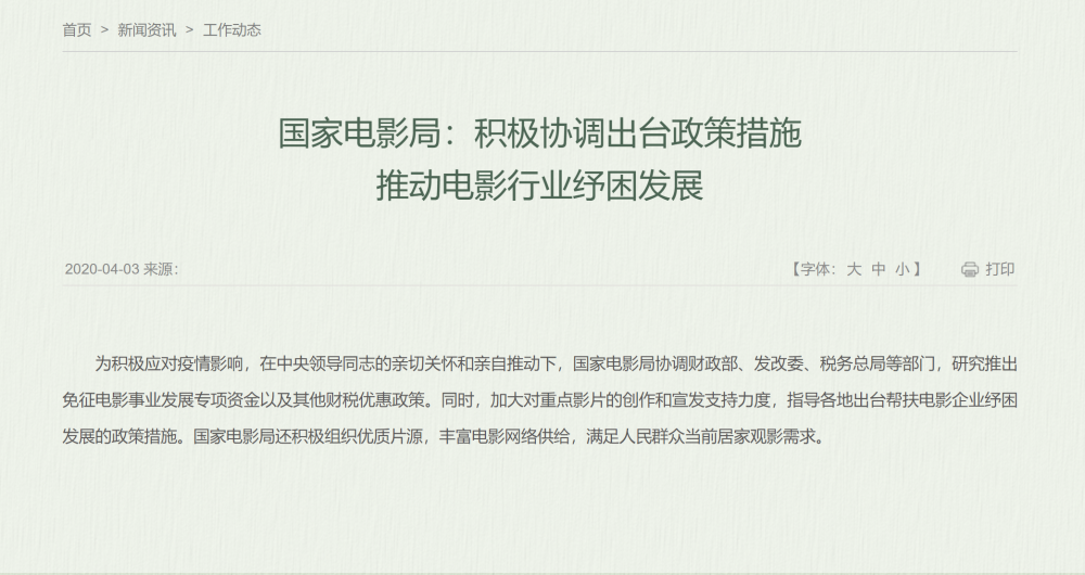 受疫情影响,国内电影院已经歇业超两个月,春节档原定上映的七部电影,以及春节之后档期原定上映的电影也都先后撤档,这对于整个电影行业都是很大的打击。 而在3月下旬,原本有部分电影院复业,开始放映《战狼2》《流浪地球》等经典电影,但3月27日晚又接到相关通知,所有影院暂不复业,已复业的立即暂停营业,具体复业时间需等待通知,这对于影院经营者和电影制片、发行公司来说无疑是又一记重击,让行业复苏变得更加艰难。然而其实不用太悲观,因为最新的两条消息让人看到了电影行业的希望。 政策推动电影行业发展 电影院暂停营业是为了“抗疫”不得不做出的选择,尽管影院经营有诸多困难,但电影局3日在官网发布的文章,则让电影从业者看到希望。 文章写道,电影局将协调多部门,研究推出助力电影事业发展的各项优惠政策,比如免除专项资金,这部分的金额以往是电影院按票房的5%上缴,作为电影发展专项资金,这项举措无疑会缓解影院经营压力; 同时,加大对重点影片的创作和宣发支持力度,指导各地出台帮扶电影企业纾困发展的措施。其实每年上映的电影超过600部,但排名前1/6的重点影片,贡献了超过一半的票房。可以说,国产和引进大片等重点电影成为贡献票房、提高影院创收的标兵。对这类电影加大支持力度,可以让电影票房有更加出色的表现,也意味着帮影院创收。 另外值得注意的是,电影局还积极组织优质片源,丰富电影网络供给,满足观众当前居家观影需求。 原本电影院计划复业,《战狼2》、《流浪地球》等经典影片率先重映,这些电影完全是为了帮扶影院走出困境,没有票房分账,票房收益都归影院所有。目前影院暂停复业,预计将有一批优质片源登录网络。参考之前《肥龙过江》、《叶问4》刚在网络上线的收费模式,相信网络点播有可能成为电影制片方和发行方创收的又一平台。 复业时间,好莱坞给出信号 那么电影院到底什么时候能复业呢?我们把目光放到目前疫情最为严重的美国,发现他们把很多大片重新定档。 其中,原定3月27日上映的《花木兰》,改档7月24日,这是一个很有趣的信号。 要知道,好莱坞电影定档其实很少变过,他们有成熟的电影工业,也有非常周密的计划,甚至很多电影还没开拍,就提前一年到两年就定下档期,并且都能如期上映。要不是疫情影响,《花木兰》如今可能已经在北美上映了。 这部电影3月份在美国做了全球首映礼,主演刘亦菲,还有李连杰、甄子丹等亚裔面孔,迪士尼的用意很明显,用这些国内观众熟知的演员,来攫取国内票房,毕竟目前中国已经成为全球最大的电影市场,我们的银幕数已经超越美国全球第一。重新定档7月24日,其实是发行方对疫情有了一个基本的判断,相信到7月份,不管是北美还是国内,影院应该都可以正常恢复营业,届时《花木兰》有可能是国内观众看到的第一部同步进口电影。 另外,巨石强森和艾米丽·布朗特主演的《丛林奇航》改档明年至7月30日,漫威超英电影《黑寡妇》原定5月1日上映,现改档至11月6日。 除了进口大片,其实囤积的国产电影也不少,除了春节档尚未和观众见面的《夺冠》、《唐人街探案3》、《紧急救援》、《急先锋》、《姜子牙》等重头电影外,还有多部奥斯卡获奖影片,如《乔乔的异想世界》、《极速车王》、《1917》等。 另外,前文提到,影院复业后,将会有一批经典电影重映,来扶持影院走出困境,和观众见面,如《哈利·波特与魔法石》,也有消息称从未登陆过内地大银幕的《这个杀手不太冷》、《天使爱美丽》等电影也会和观众见面。 这样看来,其实接下来银幕上不会缺电影,而这些有吸引力的电影也会助力票房快速增长、帮助电影院走出困境,相信用不了多久电影院就能重新恢复营业了。
