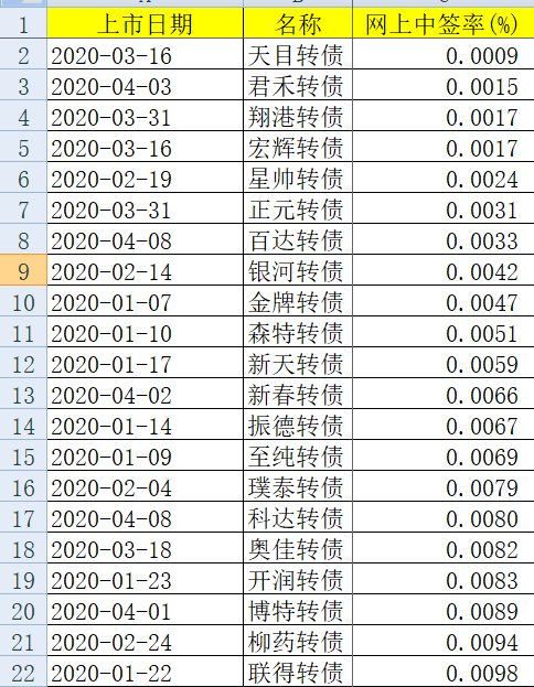 集中“捡钱”的机会又来了! 本周四、周五两天合计有7只可转债集中发行。其中周四有长集转债、鲁泰转债、东时转债三只新债发行,周五则有应急转债、起步转债、华统转债、滨化转债四只新债申购。 可转债打新空仓就能参与,从今年以来的打新情况看,打到就赚到,尚无一例破发。不过,随着参与人数的增加,中签率也在持续走低。 除了可转债之后,这两天还有沪硅产业、锐新科技、锦和商业、金田铜业4只新股申购,除了登陆科创板的沪硅产业之外,另外三只新股按照6个涨停板计算,中一签或赚超1万元。 2天7只可转债申购 今年新债上市首日平均涨20% 周四、周五两天,将有7只可转债集中申购。 今年已经有51只可转债上市交易,上市首日全部收涨,尚无一只转债破发,平均涨幅20.56%, 8只转债上市首日涨幅超30%,其中涨幅最高的是正元转债,上市首日涨38.89%,可转债中一签为10张(1000元),也就是中一签平均205元,中了正元转债一签可赚380元。 有4只可转债上市首日涨幅低于10%,最低的是正裕转债,涨幅为6.63%。 从4月份新债上市的表现来看,表现最高的是4月1日上市的博特转债,首日涨幅31.02%,此后几只新债则涨幅不超20%,最低的是新春转债,首日涨幅9.08%。 越来越难中签 多只中签率不足万一 虽然可转债打新并不是稳赚不赔,但是持续的稳定赚钱效应也吸引了越来越多的投资者参与。今年多只可转债网上申购有效申购户数都稳定在400万户以上,参与人数越多,“捡钱”也越难,从今年的中签情况来看,中签率持续走低,多只转债中签率不足万一。 今年新债平均中签率为0.0217%,21只新债中签率不足万一,最低的是天目转债,中签率只有0.0009%,还有首日涨幅最高的正元转债,中签率0.0031%。 两天还有4只新股可申购 中一签或赚超1万 这两天还有沪硅产业、锐新科技、锦和商业、金田铜业4只新股申购,其中沪硅产业是科创板新股,中签缴款日期均为4月13日(周一)16:00之前。 科创板打新的“赚钱效应”让登陆科创板的沪硅产业颇受关注,今年以来共有24只科创板新股上市,上市首日平均涨幅为185.5%。沪硅产业拟公开发行股份数量不超过6.2亿股,是今年以来继京沪高铁之后发行数量第二的新股。 锦和商业、锐新科技和金田铜业这三只新股来看,如果按6个涨停计算,单签盈利均超万元。 5 @% a j6 ^4 M/ k- Z