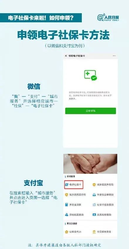 2 电子社保卡 说完养老金的领取问题,小编再和大伙说一个好消息,以后看病不用再排队缴费,可直接线上支付,再也不用担心忘带社保卡了! 人社部发布通知,今年要在所有地市,签发应用全国统一标准的电子社保卡,至少1亿人领取电子社保卡,所有地市均开通移动支付服务。 电子社保卡跟实体卡有区别吗? 作用一模一样,只是能存在手机里,跟支付宝微信能绑一块。 电子社保卡的用处