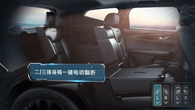 后备箱一键电动翻折按钮,轻松控制二、三排座椅 ; \8 j5 A* q* y1 H