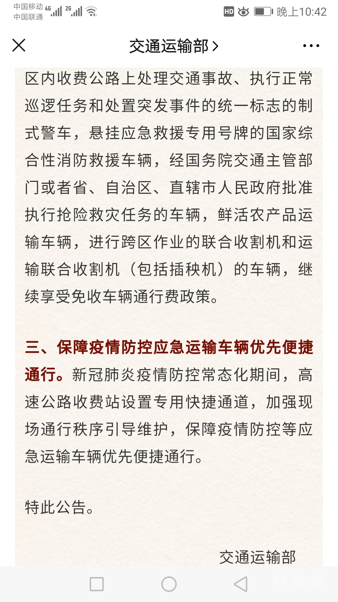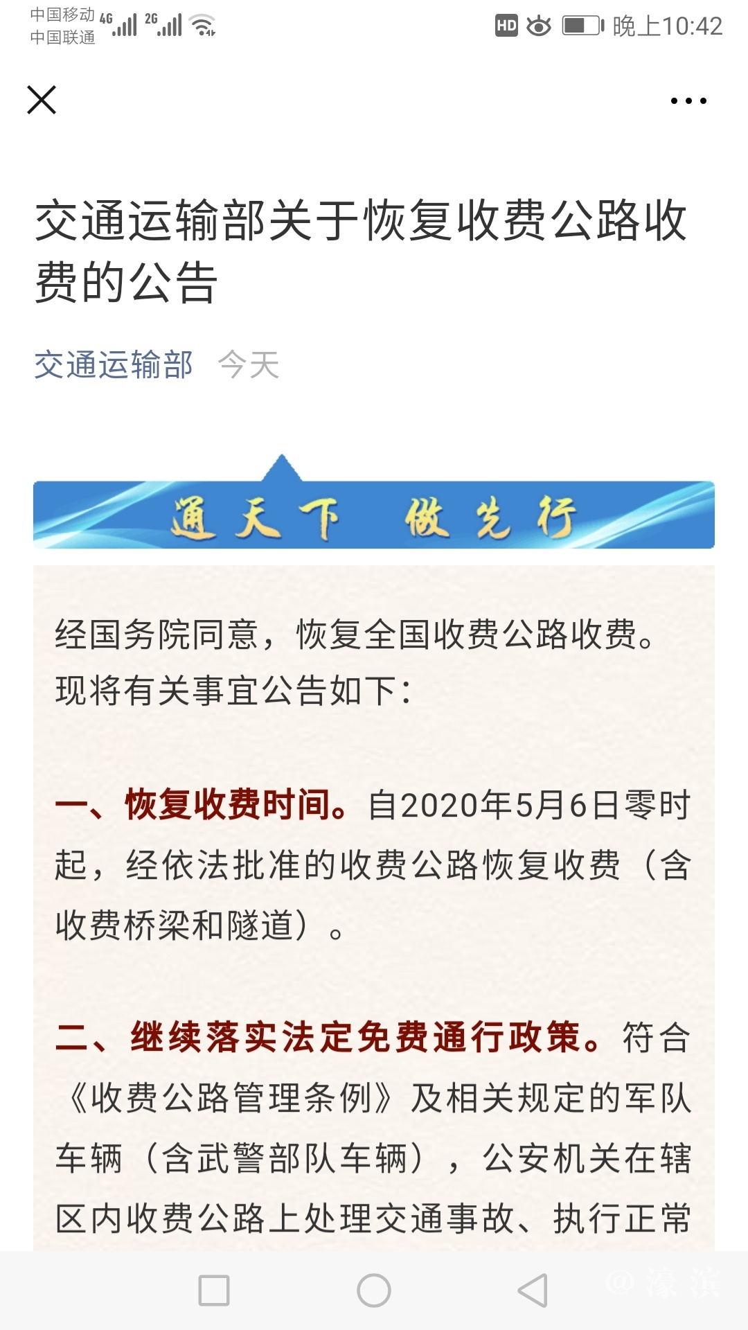 [新闻快讯] 5月6日全国公路恢复收费。 |