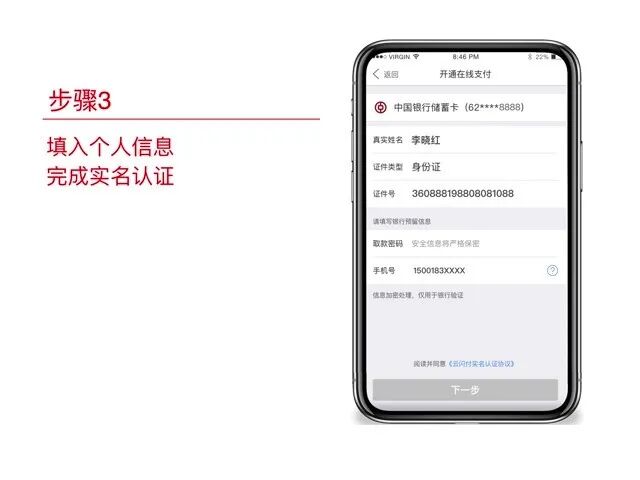第一步 填写姓名、身份证、手机号码 并获取短信验证码  第二步 输入短信验证码  第三步 验证成功