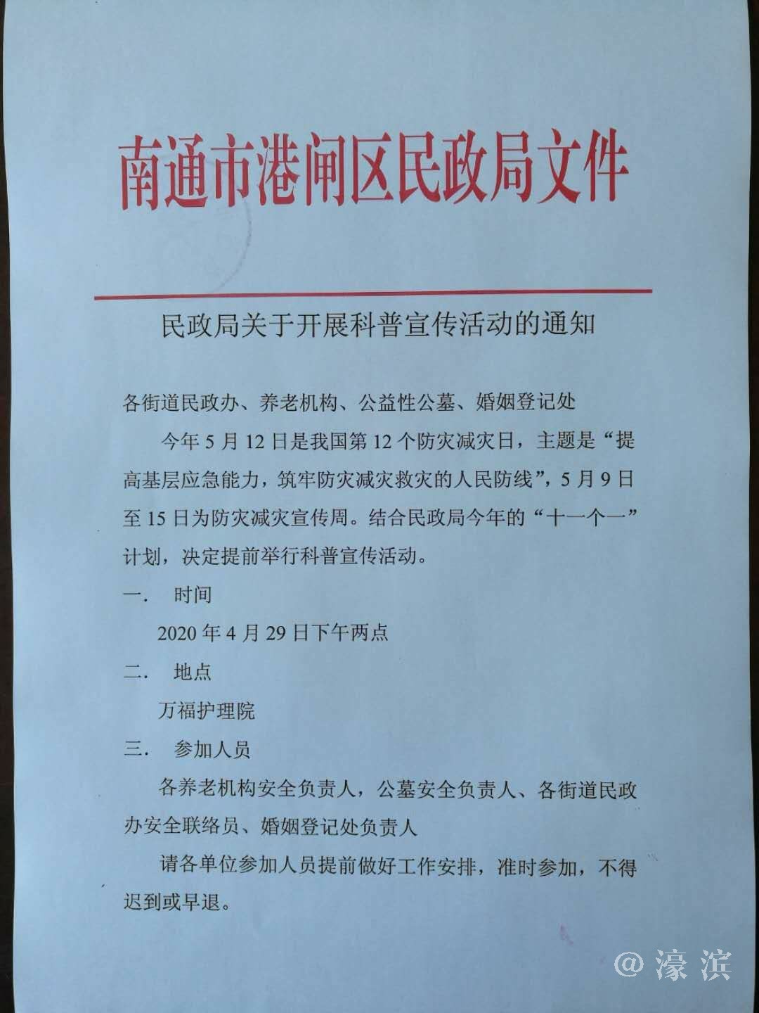 [百姓民声] 南通市港闸区民政局今天下午开展了消防安全科普宣传活动 |