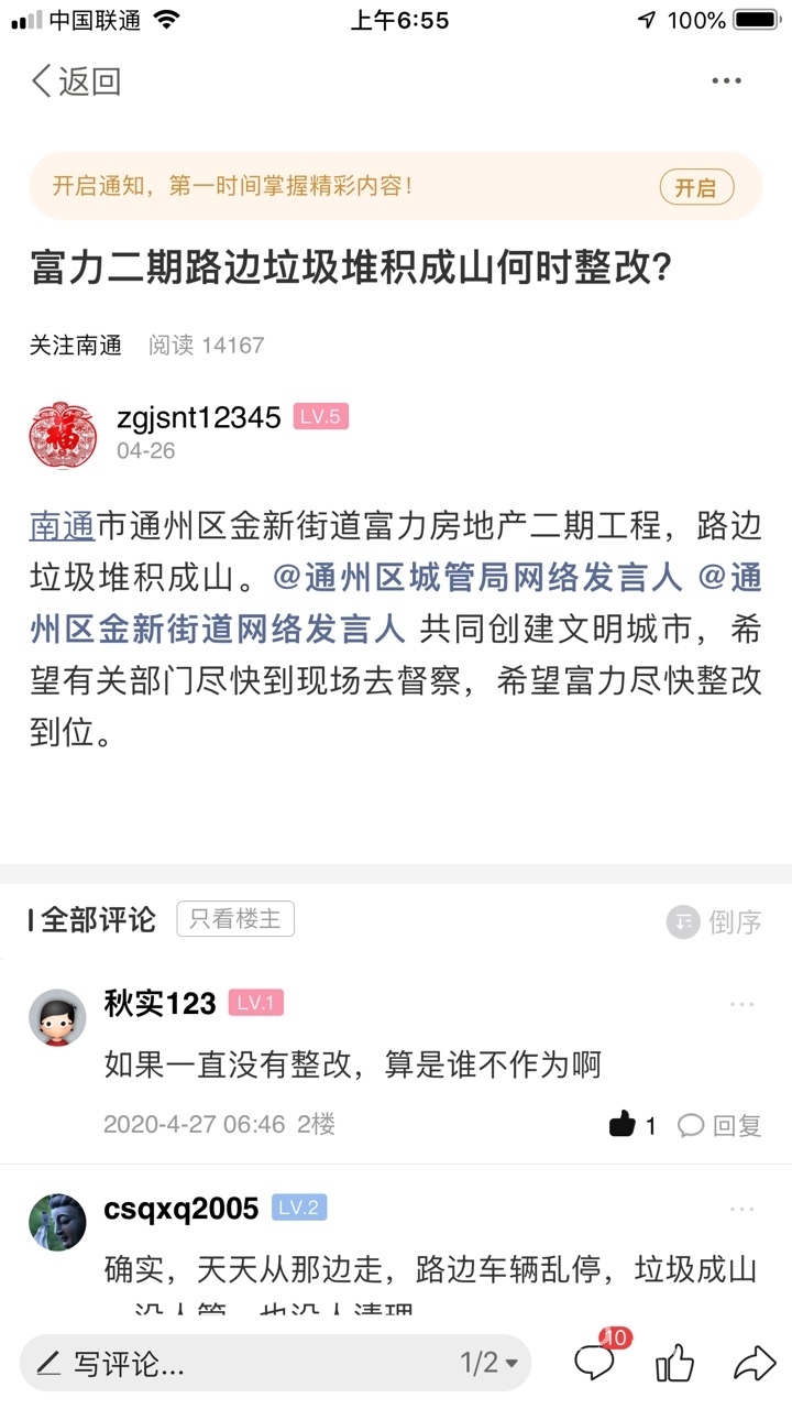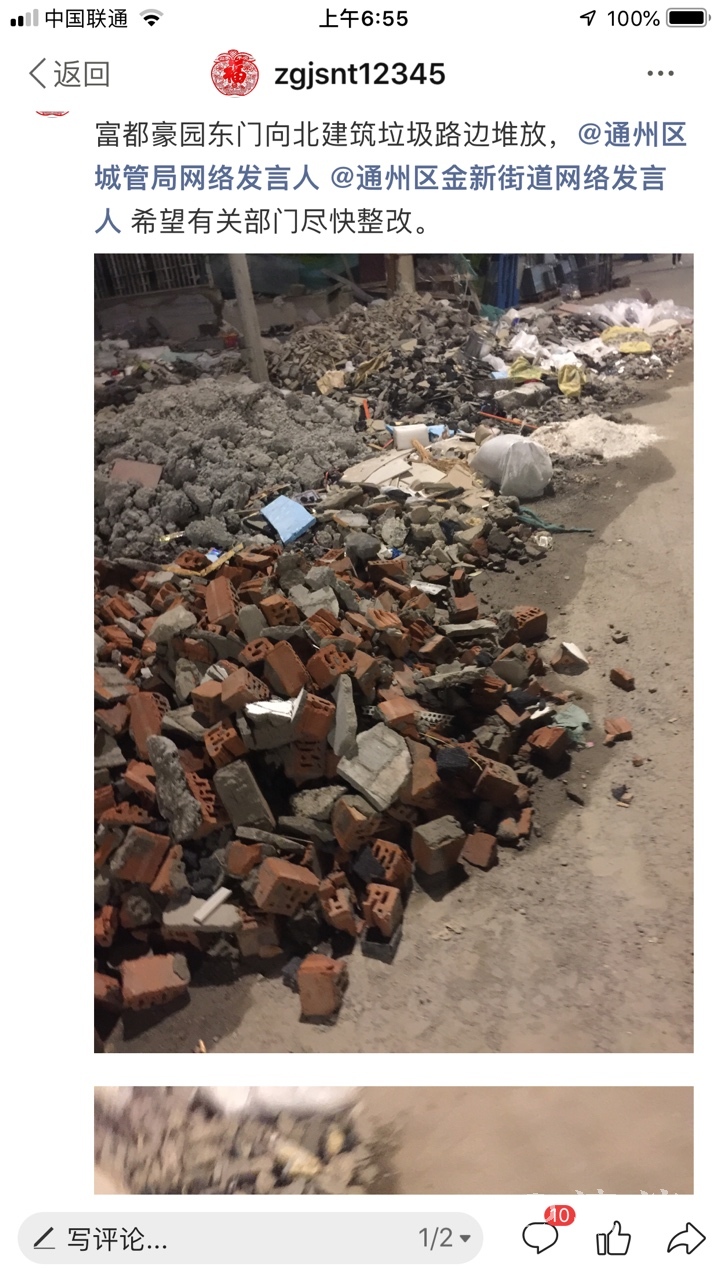[百姓民声] 报告通州区区长有关部门没有履行主体责任,明显行政不作为。 |