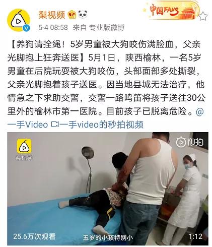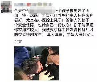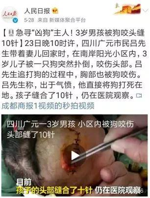 五一长假期间,陕西榆林一个5岁的小男孩,被爸爸发现时竟然浑身是血! 孩子的爸爸是做烧烤生意的,当时在前院做生意,小孩在后院玩耍。 不一会儿,就见孩子跑过来,身上全是血,头面部还有多处撕裂。 一问才知道,是被一条大狗咬了。 孩子爸吓得抱起孩子就往医院跑,到了县城医院,医生表示这种情况,医院的条件已无法治疗。 情急之下,这位爸爸求助了交警,交警一路鸣笛将孩子送到30公里外的市医院,这才脱离危险。 当事医生说,看到孩子的时候,他满脸的血已经凝固成了厚厚的血痂,孩子的爸爸忙得鞋子都掉了,是光着脚来的医院。 狗被认为是人类最忠实的朋友,也深受小朋友喜爱。 但是我们一定要注意,狗也是有危险性的。万一被咬伤,会有生命危险。 01 春夏季节狗咬人事件多发每年,我们都会看到很多起狗咬人的报道,而其中受伤最严重的大多是孩子。 2018年5月23日,四川一名 3 岁男孩被野狗扑倒咬伤,头部缝了 10 针。 2018年7月,武汉一个半岁的小宝宝被两条没有栓绳的狗叼走,全身多处受伤,颅骨被咬穿,在抢救近60天后才出院。 2019年7月,一个6岁的小朋友在床上睡觉,被家中的宠物狗当成玩具咬伤,导致休克住院。 我们可以看到,大多数的狗咬人发生在温度逐渐升高的春夏季节。 为什么会这样呢? 狗咬人的原因一般有以下几种: (1)感受到危险和冒犯,出于保护自己的本能进行攻击; (2)人类的某些行为激发了他的追捕欲,比如说奔跑; (3)心情烦躁的时候,容易伤人; (4)保护幼崽,刚生完宝宝的狗妈妈特别敏感,一点异动都会让他警惕; (5)动物发情期容易伤人。 春夏季节,气温升高,跟人一样,狗狗的心情就会容易烦躁。并且,这个时候也是狗狗发情期和产崽高峰期。 而随着气温升高,出来散步、游玩的人又越来越多,两者碰上的几率大大增加,所以狗咬人事件随之上升。 再加上春夏季节大家穿得比较单薄,一旦被咬,伤势都会比较严重。 尤其是孩子,被狗撕咬的时候,该有多疼多害怕? 作为父母,我们真的不敢想。 唯有提高警惕,保护好孩子,让他们远离危险。 02 如何预防被狗咬伤2018年5月,北京朝阳区多名孩子在户外玩耍时被流浪狗咬伤,其中一名叫童童的5岁男孩,入院一天就花费10万余元。 比起事后补救,我们更需要知道的是,该如何预防被狗咬伤: (1)当发现狗狗靠近时,应该第一时间把孩子抱起来。 因为孩子身高与狗相当,容易引起狗狗警觉。另外,孩子乱动也容易激怒狗狗。 抱起孩子,即便狗狗发动袭击,也能保护孩子不受伤害。 (2)不要做任何容易引起狗狗注意的事情,比如奔跑、挥手等大幅度的动作,或者惊慌大叫。要保持冷静,站着不动,或者缓慢地离开。 (3)可以慢慢地侧身,不要正面相对,避免直视狗狗的眼睛。 (4)一旦狗狗发动攻击,我们又无法迅速躲避时,可以主动把手里的包、或者身上可以解下的东西塞给它,当它咬住时,趁机脱身。 (5)实在逃脱无门,狗狗已经扑上来的时候,可以把自己卷成一个球,捂住头面部,保持不动。 尖叫或翻滚只会让狗狗更加凶猛。 很多父母认为,让孩子亲近宠物,可以培养孩子的爱心,这一点无可厚非。 但是养狗的家庭要特别注意预防孩子被宠物伤害。 据统计,绝大多数的狗咬人事件发生在私宅之内。 儿童,尤其是1—9岁的儿童,最有可能被狗咬伤,并且一旦咬伤,都很严重。 所以,我们千万不能因为狗是自己家里的,就毫无戒备之心。 当我们家中有宠物狗时,一定要教会孩子以下常识: (1)不要让孩子接近刚生完崽的猫狗。因为它们跟人一样护犊心切,一旦有人靠近,它们会认为幼崽受到威胁,因此不管是谁,它们都可能会拼命攻击。 (2)告诉孩子,不要打扰正在睡觉、吃饭的狗,或粗鲁地抓捏它们,因为这会激起它们的攻击性。 (3)当狗生病的时候,孩子尽量不要靠近。一是容易有病毒感染,二是这时候的狗情绪不稳定,容易伤人。 (4)不要追着狗转圈,也不要面对面抱狗,这会激起狗狗的战斗欲。 (5)当家中有举行聚会时,最好把狗狗拴在远离喧闹的地方。因为刺激的环境会让狗狗烦躁不安。 当然,如果一定要养狗,最好是饲养那种对孩子比较友好的宠物狗品种。 并且要注意,不能认为自家狗很温顺,就留孩子一人单独跟宠物相处。 要知道,人尚有喜怒无常,何况是狗。 万一被激怒,孩子没有反抗能力,就会非常危险。 03 被狗咬伤了怎么办万一不幸被狗咬伤,最大的风险就是感染狂犬病。 2016年,8岁的女孩因为半年前被狗咬伤未打疫苗,狂犬病发身亡。去世前全身发疼、手抖、胡言乱语。 2018年1月,9岁男孩狂犬病发作,全身抽搐而死。家长竟然说孩子常被狗抓伤,并未在意。 2018年11月,一名5岁男童发狂犬病死亡,是因为半年前被自己家狗抓伤,家长没注意,未进行处理。 因为家长的而一时疏忽,孩子失去了一条鲜活的生命,希望这样的惨剧再也不要发生。 有调查数据显示:中国每年狂犬病发病人数仅次于印度,位居全球第二。 2004--2014年,狂犬病死亡人数一直高居中国传染病死亡数的前3位。 根据《狂犬病预防控制技术指南(2016版)》介绍:狂犬病的病死率几乎100%。 但是被狗咬了也不要太过惊慌,毕竟,避免得狂犬病有一个非常有效的办法:打疫苗。 当孩子被狗咬伤,我们可以按照以下步骤进行处理: (1)迅速用流动的自来水和肥皂水,不停地交替冲洗伤口,至少 15 分钟。 因为狂犬病毒在肥皂水中可以灭活,所以这一步非常重要,必须第一时间做到。 (2)给伤口