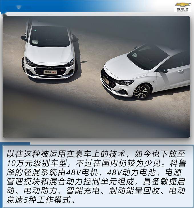 站在未来的角度上看,传统燃油车的地位正在不断被新能源车型所侵蚀,在国内双积分的政策下,油耗水平更是各家车厂亟待解决的问题。对于车企而言,车型中加入48V轻混系统,能够快速提升油耗水平,且相比其他混动系统成本低上不少,最终落在车价上也能让消费者接受。刚刚小改款上市的雪佛兰科鲁泽正是这样的一款车型,在其1.0T三缸和1.3T三缸发动机中,加入48V轻混系统,而正是这样一个小小的“外挂”,让科鲁泽在动力和燃油经济性上,同上款车型发生不小变化。 我们此次试驾的是RS 330T自动畅快版,搭载全新一代Ecotec 1.3L双喷射涡轮增压发动机,匹配6速DSS智能启停变速箱,同此前车型并无不同,仅在此基础上加入48V的混动技术。 总结 根据官方介绍,48V系统的加入将使得 科鲁泽(参数|图片)实现约10%的油耗改善,使油耗低至4.7L/100km,本次试驾时间有限,日后有机会我们也将进行油耗测试。但48V对科鲁泽的发动机启动和加速性能却是实打实的有帮助,尤其是初段一气呵成的加速令人印象深刻,再搭配偏运动的底盘调校,这款运动家轿的驾驶特性应当是年轻人所喜爱的。国人对车辆的高技术水平向来有一定喜好,48V轻混系统可以说是10万级家用轿车一个小光环,让科鲁泽的增加了一些附带价值,也具有了更加吸引消费者的亮点。