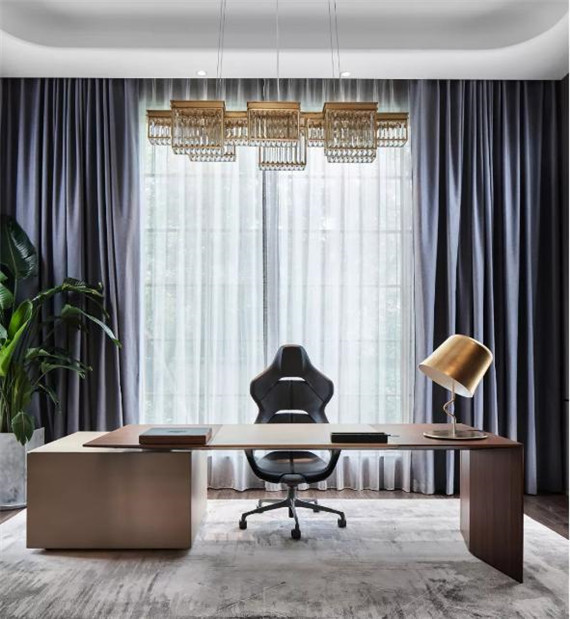 门厅的另一侧是办公室。一扇哑光玻璃门保障了在家办公期间的私密性,简洁的桌面,舒服的桌椅,清新的绿植,为工作减少一丝烦恼,也为片刻宁静提供无压力的场域。