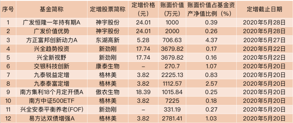 中国基金报记者 李树超 继定增主题基金、主动权益类基金之后,被动指数型基金、科创基金,甚至相对较低风险的公募FOF、养老FOF、二级债基等产品,也纷纷加入定增投资的“盛宴”。 多位业内人士认为,今年2月份再融资新政出台后,未来2-3年定增融资将处于新一轮的扩张期,目前定增市场的折价“安全垫”、缩短的锁定期、降低的投资门槛等,都有利于分散基金组合风险,吸引包括相对较低风险偏好的产品的广泛参与。 公募参与定增规模突破60亿元 暴增近500% Wind数据显示,以定增截止日起算,截至5月29日,今年以来,累计有182只基金(基金份额合并计算)参与了23家上市公司的定向增发项目,账面总价值为63.18亿元,这一数据是去年同期的5.95倍,也是去年全年29.85亿元的成交总量的2倍以上。 值得注意的是,除了九泰锐益定增、九泰泰富定增等主题基金,广发价值优势、兴全趋势投资等主动权益类基金外,养老FOF、二级债基等部分低风险偏好的产品也将定增投资纳入了视野。 比如,兴证全球基金旗下兴全恒益债券、兴全安泰平衡养老目标三年持有(FOF),南方基金旗下南方中证 500ETF、南方集利18个月定开债,以及交银科技创新等不同类型产品,皆在近期公告参与了上市公司的定向增发。 谈到二级债基、养老FOF等相对偏低风险的产品,争相参与定增投资的现象,九泰基金定增投资中心总经理、基金经理刘开运表示,今年出台的再融资新政,核心在于定价规则、锁定期和投资门槛的变化,新规下定增项目定价空间更加灵活,锁定期缩短,由于发行对象增加带来单个项目投资门槛的降低。 他认为,新规的执行有利于分散化投资定增标的组合,因此吸引包括二级债基、养老FOF等相对较低风险偏好产品的参与。 上海一家中型基金公司投研人士也表示,相比股票型基金或混合型基金,二级债基、养老FOF风险偏好相对偏较低,正常情况下股票投资仓位比例都相对较小,定增这种有相对折价“安全垫”的投资品种会是一个不错的选择。 虽然各类型基金密集参与定增,但在业内人士看来,当前定增市场总体上处于定增项目供给充足、定增参与资金相对较少的阶段,定增投资的激烈程度尚未明显影响项目折价的“安全垫”。 刘开运认为,定增市场发行最终成交价格取决于项目与资金供需的情况,根据当前市场的判断,全年定增项目供给数量将明显增加,定增参与资金也将明显增加。然而,目前大多数资管机构定增产品仍处于募集期,能够募集多大规模的资金将决定未来有多少资金参与定增市场竞争。但总体上而言,定增投资平均发行折价或仍将保持一个较高的水平。 据九泰基金统计,截止5月26日,根据已经披露的定增发行情况,自2月14日再融资新政执行以来,多家上市公司未能完成募集计划融资规模。同时,今年以来上市公司融资需求高涨,共有438家上市公司计划通过竞价发行方式融资7198亿元,这一规模较新规出台之前大幅增加。 上海上述中型基金公司投研人士也称,尽管最近定增市场比较火热,但是依旧存在部分标的公司的定增项目无法募满的现象。从这个角度来看,定增项目的参与背后是有明确的选股逻辑的,参与者对于资产自身的盈利能力考核十分严苛。另一方面,并非没有折价的定增项目或者折扣小的定增项目就没有赚钱的机会。 未来2-3年定增融资处于新一轮扩张期 定增投资面临较好市场机遇 业内人士认为,从大的周期的角度,当前定增市场总体上处于融资规模,投资情绪,以及资金供给的相对低位,随着再融资政策的调整,未来定增市场或将出现明显的反弹。 从A股股权融资统计来看,Wind数据显示,截至5月29日,今年以来90家公司定向增发融资总金额为2846.71亿元,在A股股权融资占比达到53.55%,从去年44%的低谷开始攀升。 值得注意的是,在2013-2017年,增发融资在股权融资中占比一直超过70%,IPO、配股、优先股、可转债等股权融资占比相对式微,随着2017年再融资新规、减持新规等阶段性收紧,增发融资占比在2018年跌至62.14%,并在2019年跌至44.69%的低谷。 在刘开运看来,2013年-2016年定增融资规模处于上升周期并在2017年2月再融资规则的修订后进入下降周期,直至2020年2月再融资新政的出台,未来2-3年定增融资将处于新一轮的扩张周期,为定增投资创造了良好的市场基础。 而从当前市场参与定增的时机看,刘开运认为定增投资处于政策落地之后的政策红利期,上市公司融资需求加大,优质公司定增投资机会明显增加,为中长期的定增投资提供了一定的投资机遇。 上海上述中型基金公司投研人士也称,受疫情影响,目前A股市场整体估值水平处于底部区域,定增投资的未来中长期逻辑的投资回报值得看好;另一方面,定增的回报不仅仅是存在折价空间,更多的还是来自于标的资产自身的长期盈利能力。 从今年公募参与定增项目的方向看,以科技、生物医药等板块的上市公司居多,神宇股份、康泰生物、剑桥科技等多只科技、医药板块个股定增为多只基金参与和获配。 北京一位定增基金经理对此表示,目前科技、医药行业的上市公司融资标的供给较多,融资需求旺盛多,而从基本面角度看,上述行业融资项目中确实有些较好的投资标的,符合基金投资者的筛选标准。 更多的投研人士则表示,在定增投资中将会基于基本面和公司质地精选投资标的,并不会对具体行业有所偏爱。 刘开运表示,九泰基金定增投资标